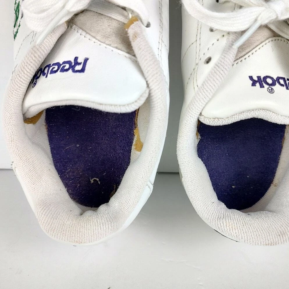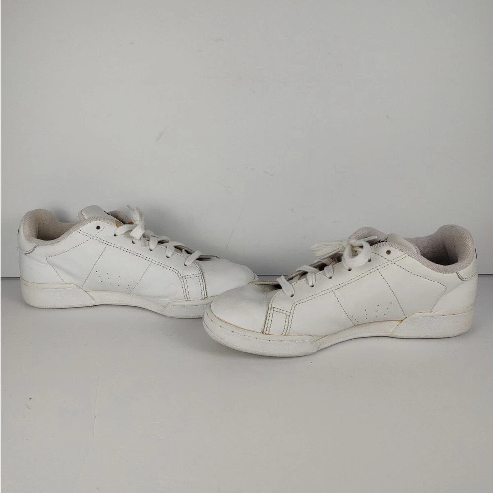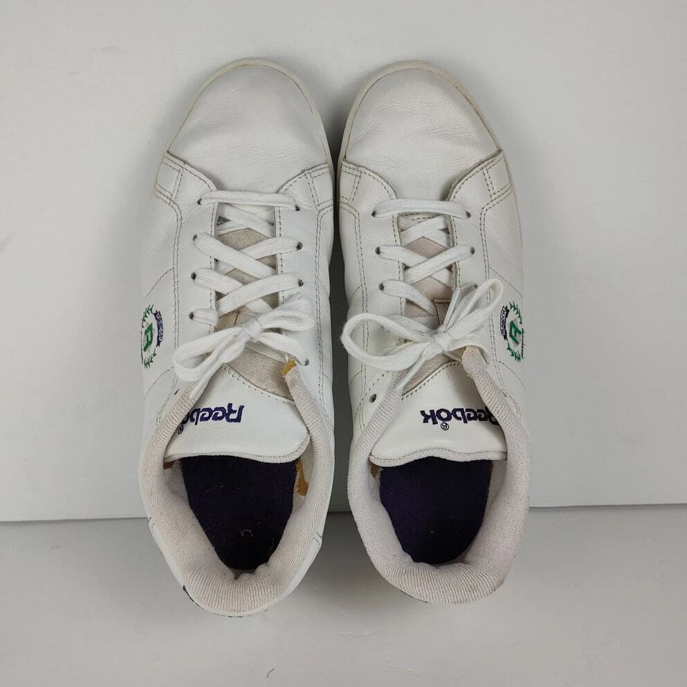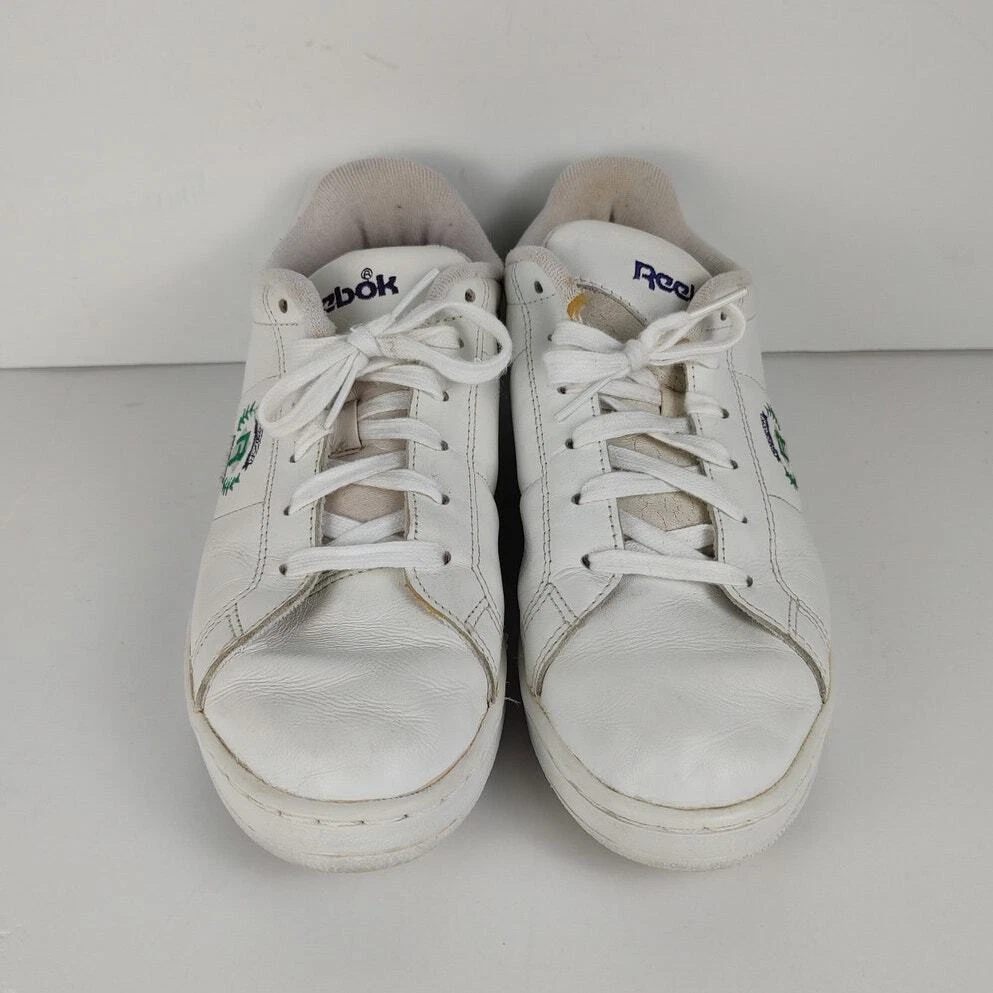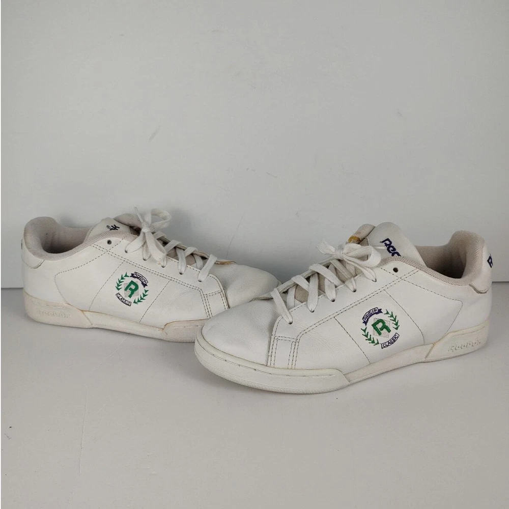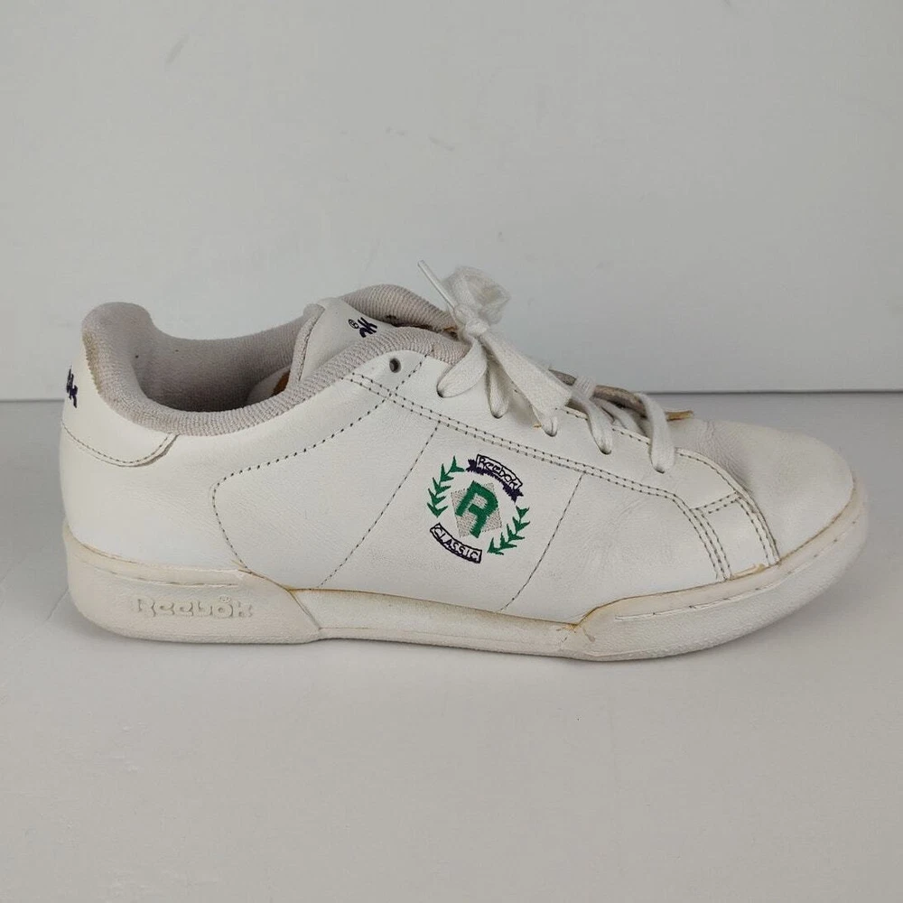 Reebok NPC Insignia - VTG 90s white reebok retro streetwear trainers, womens size 9. Theyre in great condition, no holes or stains. No seperation Insoles are a little dirty Tread is lightly worn DISCLAIMER: older shoes may be more fragile and prone to damage, please use with care Please reference photos before purchasing