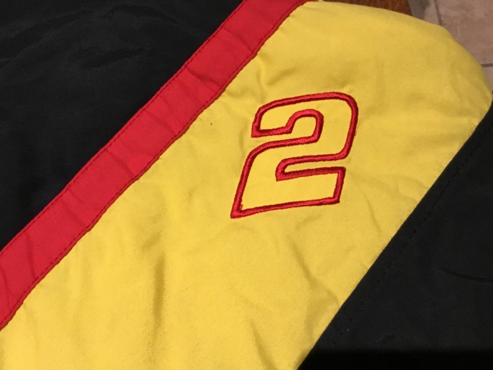 This is an awesome Vintage 90s Rusty Wallace #2 Miller Lite Ford Penske Racing XL NASCAR Bomber Jacket! The original tag has been taken off, so I don’t know what brand it is and there are a couple stain areas. Otherwise, the zipper still functions exceptionally well and the jacket is in great condition! See photos! If you have any questions, please contact me. Thanks for looking!