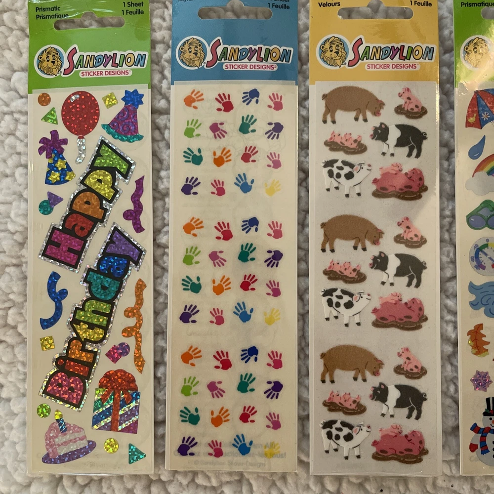 This is a lot of 7 vintage 90s Sandylion stickers, perfect for scrapbooking or collecting. The stickers feature a Prizmatic, Fuzzy, and Rare design, perfect for adding a unique touch to any project. The brand is Sandylion and the stickers are a great way to add some nostalgia to your crafts. These stickers are perfect for anyone interested in history and want to add a retro touch to their scrapbook or collection. Happy Birthday Frogs Disney Winnie the Pooh and Tiger Bears Hands