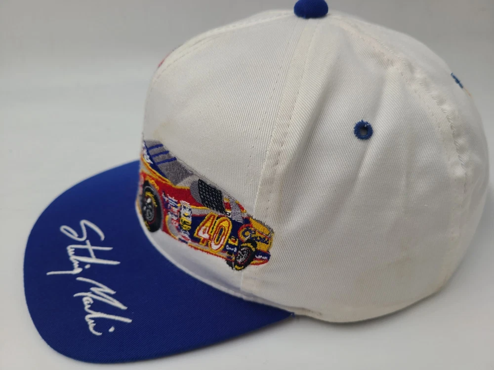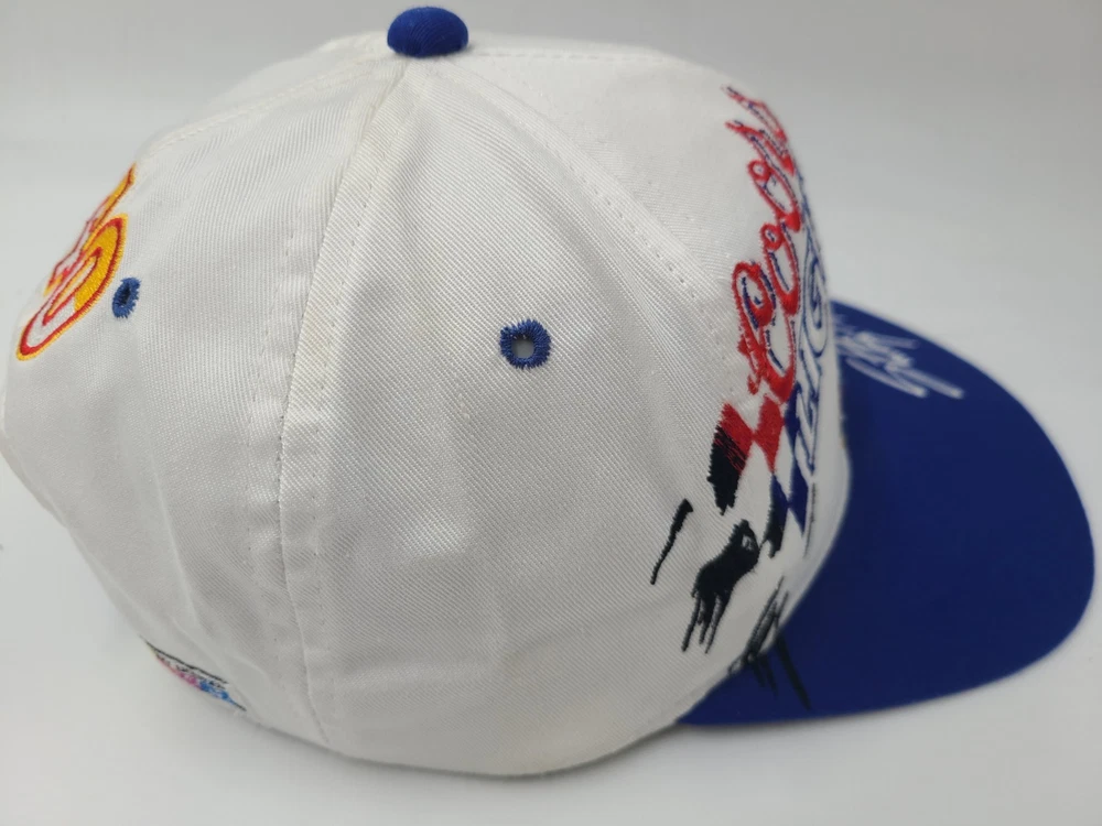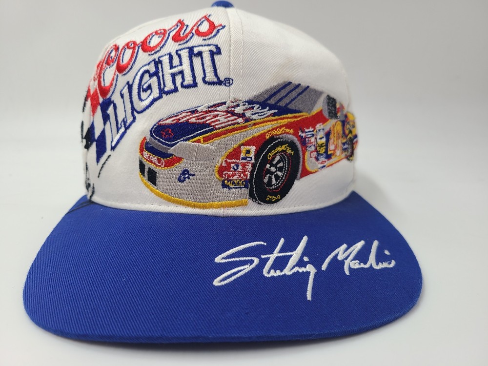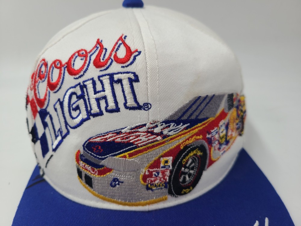 Has stains/discoloration on the front, side, and back as seen in photos. Also has a thread line on the side. Vintage Sterling Marlin #40 Coors Light Snapback Hat Cap 90s NASCAR White Blue. EACH ADDITIONAL HAT PURCHASED IS ONLY $1 ADDED SHIPPING!