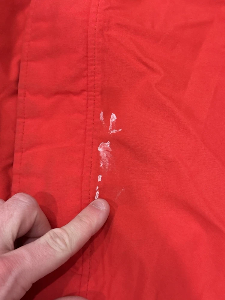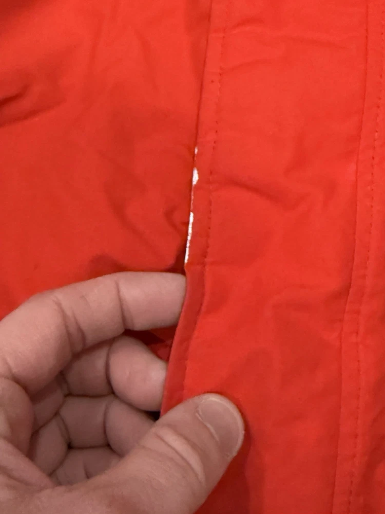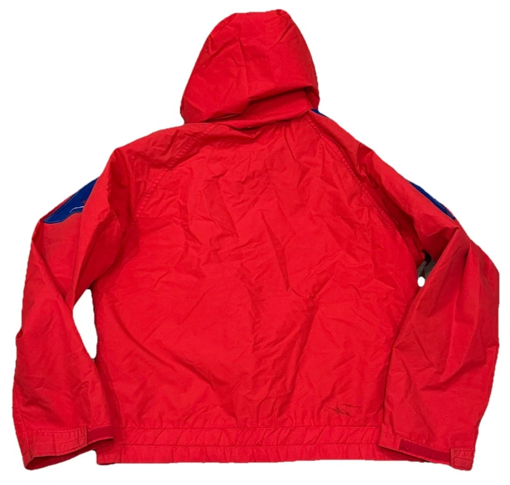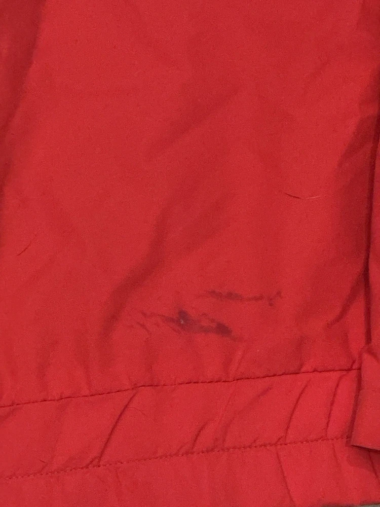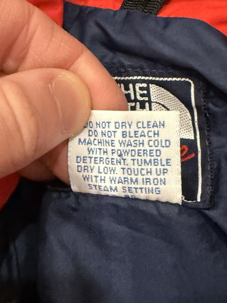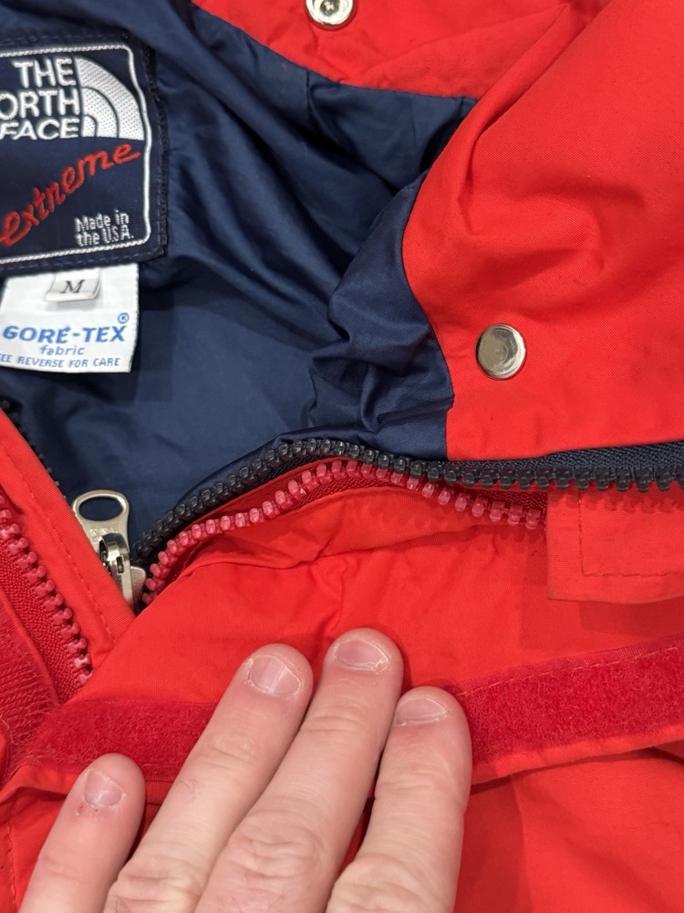 Stain shown! The Vintage 90s The North Face Extreme Gore Tex Jacket is a stylish and functional outerwear piece for men in size medium. Featuring a red color with a solid pattern, this mid-length jacket is made of durable nylon outer shell material and lined with nylon. It is equipped with a full zip closure, hood, and is windproof and waterproof, making it ideal for outdoor activities like walking, skiing, and hiking. This classic jacket is a timeless piece with a retro 80s and 90s theme, perfect for casual or travel occasions.