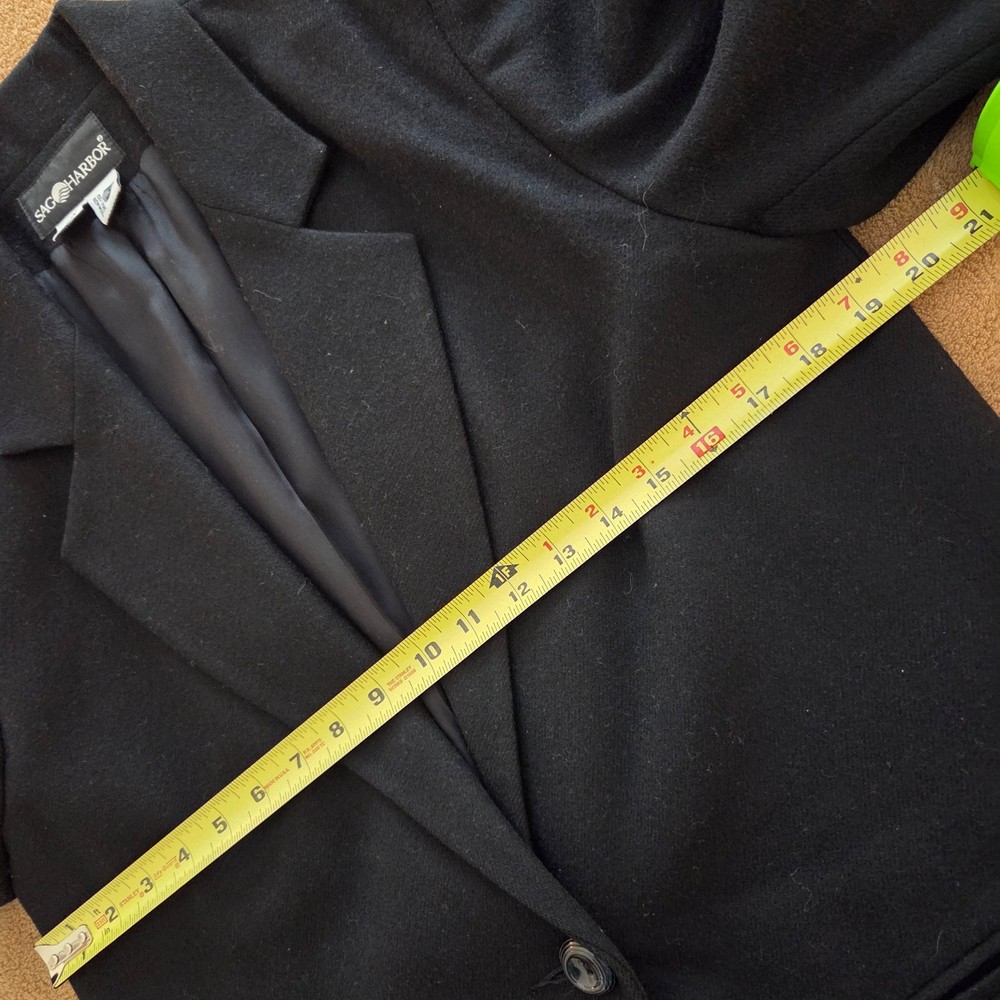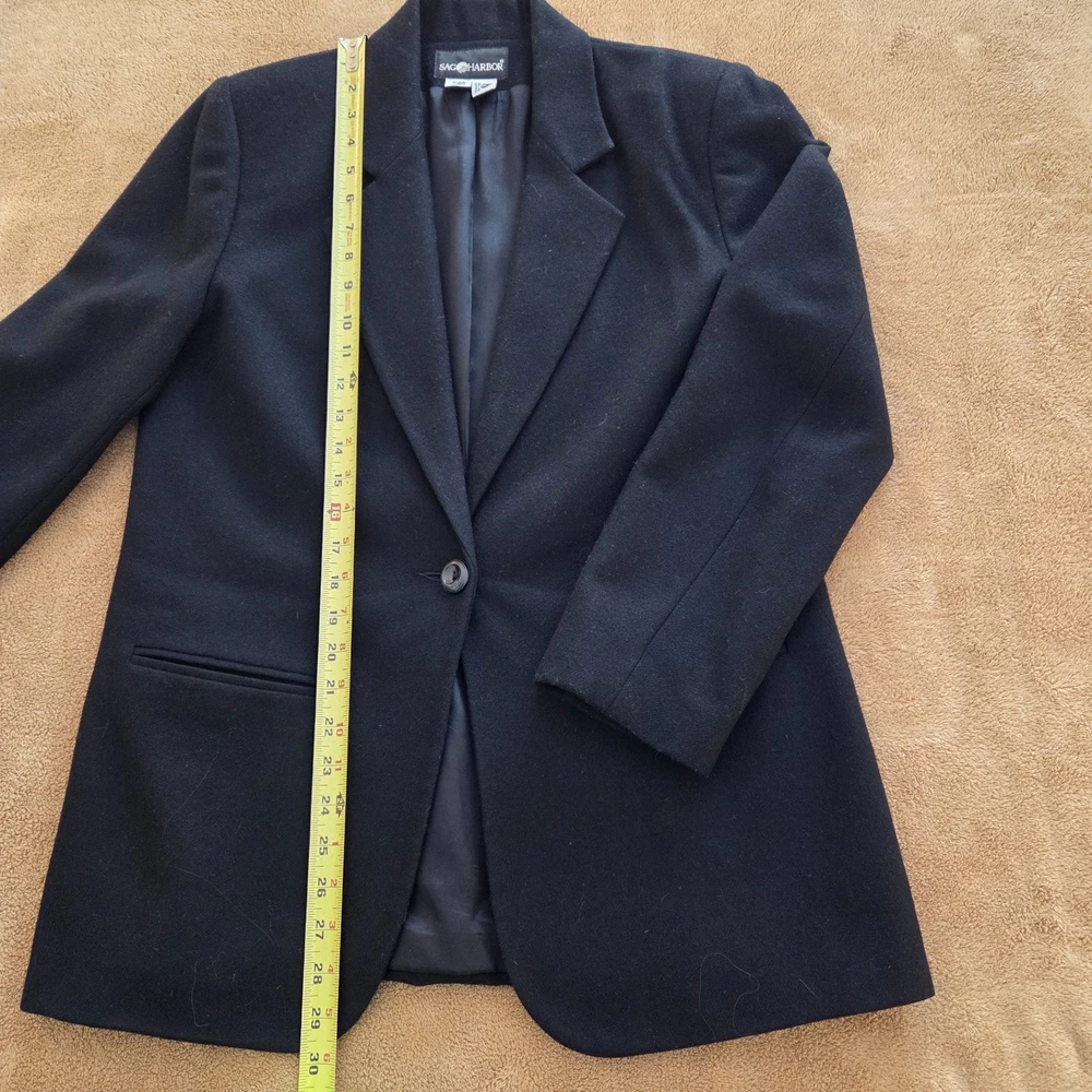 Vintage 90s Women's Black Blazer 100% Wool Sag Harbor Size 8. Fully Lined in Black. Single Button Front. No Rear Vent, No Button on Sleeve. Shoulders are slightly padded for shape. Excellent condition. This item was not thrifted but was mine from the 90s. I was a real estate appraiser and this was my "go-to" when I needed to look professional in the field. Jacket no longer fits. I am sure I had it dry cleaned around the last time I wore it. Preppy Corpcore Academia Heritage Office Minimalist Capsule Wardrobe Returns accepted - free shipping on returns.