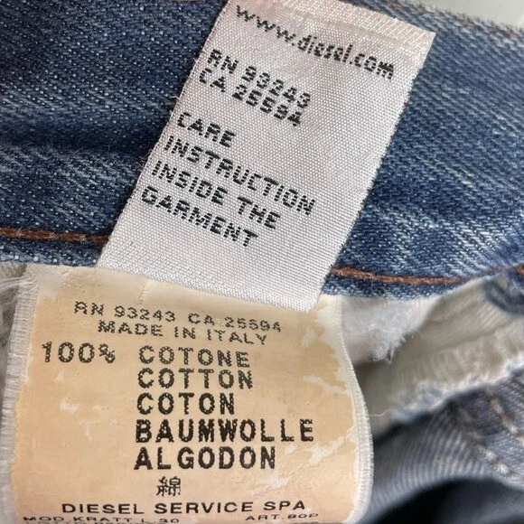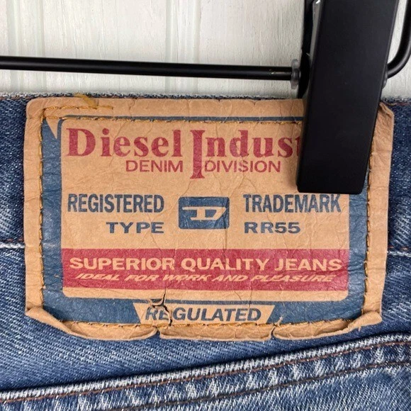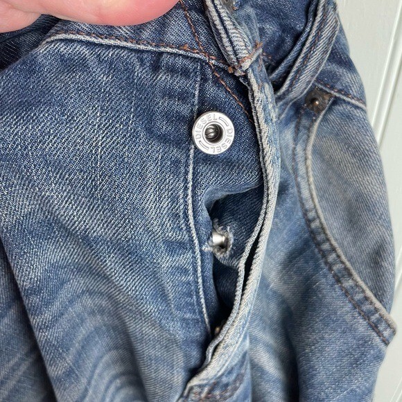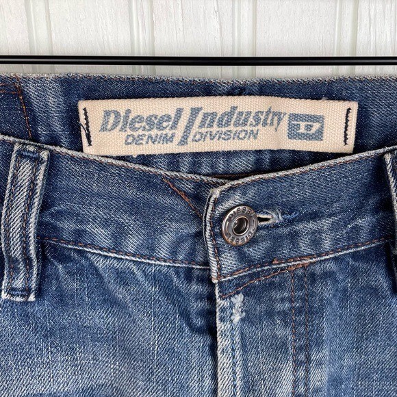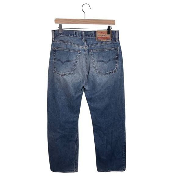 Closure: Button Theme: Retro Fabric Type: Denim Brand: Diesel Type: Jeans Seller Notes: “Gently used.” Color: Blue Style: Straight Season: Fall, Spring, Summer, Winter Material: Cotton Size Type: Regular Fabric Wash: Dark Size: Waist 33 Inseam: 28.5 in Department: Men