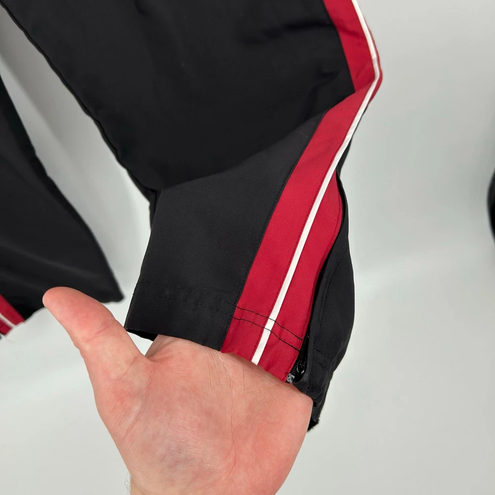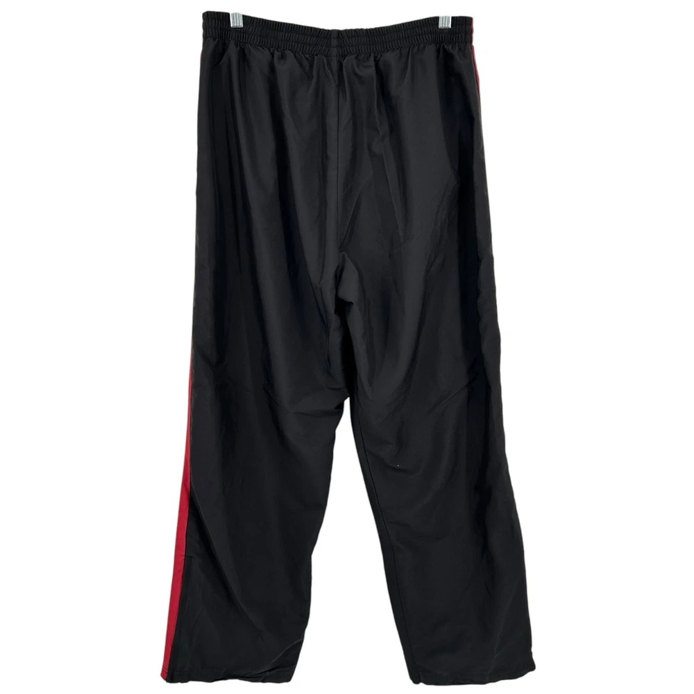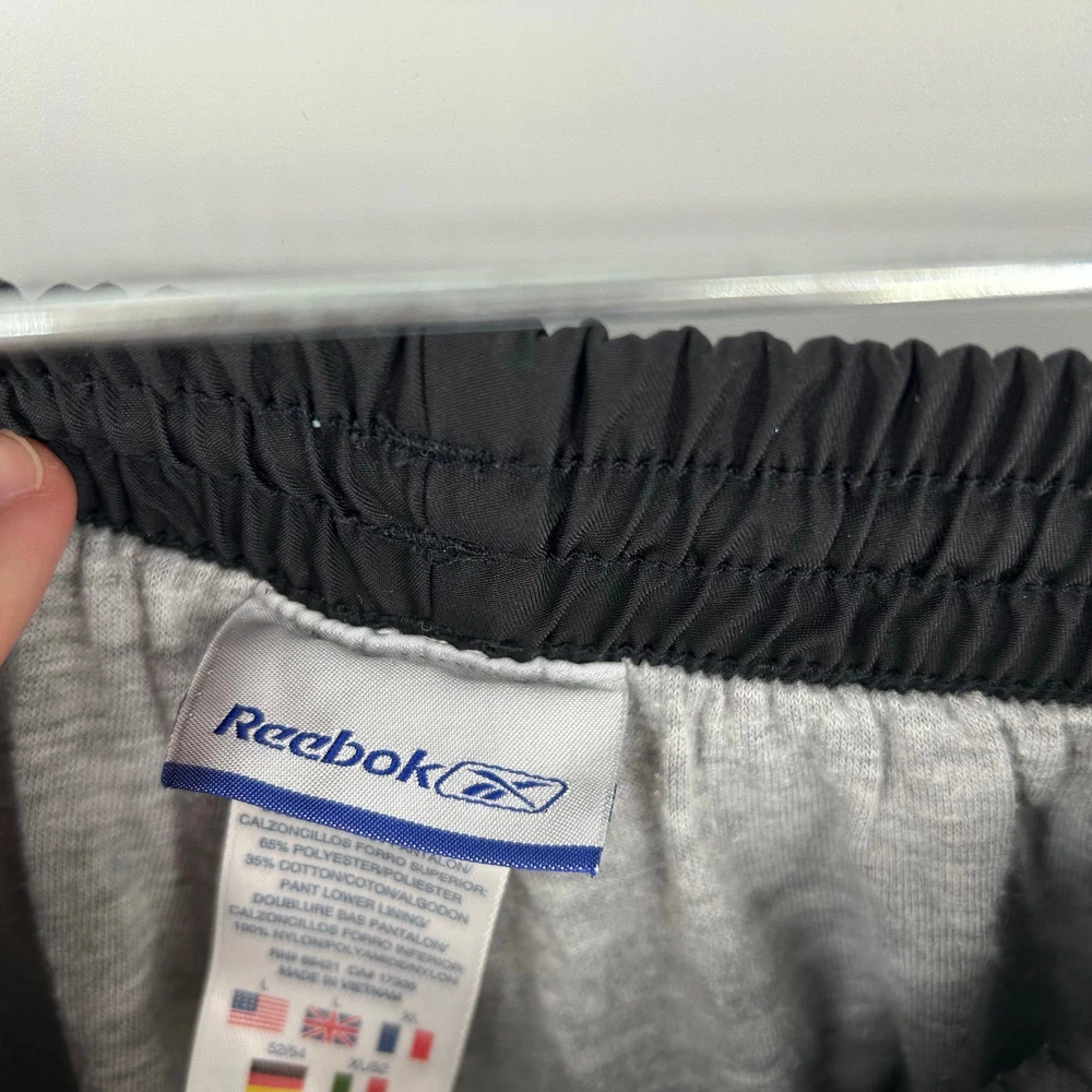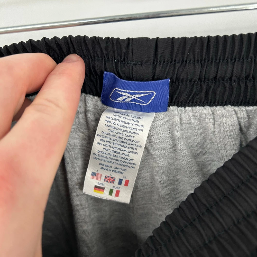 Vintage 90s men's black red Reebok wide leg lined baggy windbreaker track sweatpants w/ zippered ankles Tag Size: L Waist: 31-36" (stretch) Inseam: 32" Leg Opening: 10" Item is in good used condition. Look at photos to see the condition. All, if any, flaws have been pictured. See the last photo for measurements. The waist measurements are measured flat and then multiplied by 2 to get the full measurement around. Please know which measurements fit you prior to purchasing, and don’t just rely on the size tag. Feel free to ask any questions! ***Item is cross posted on several platforms***