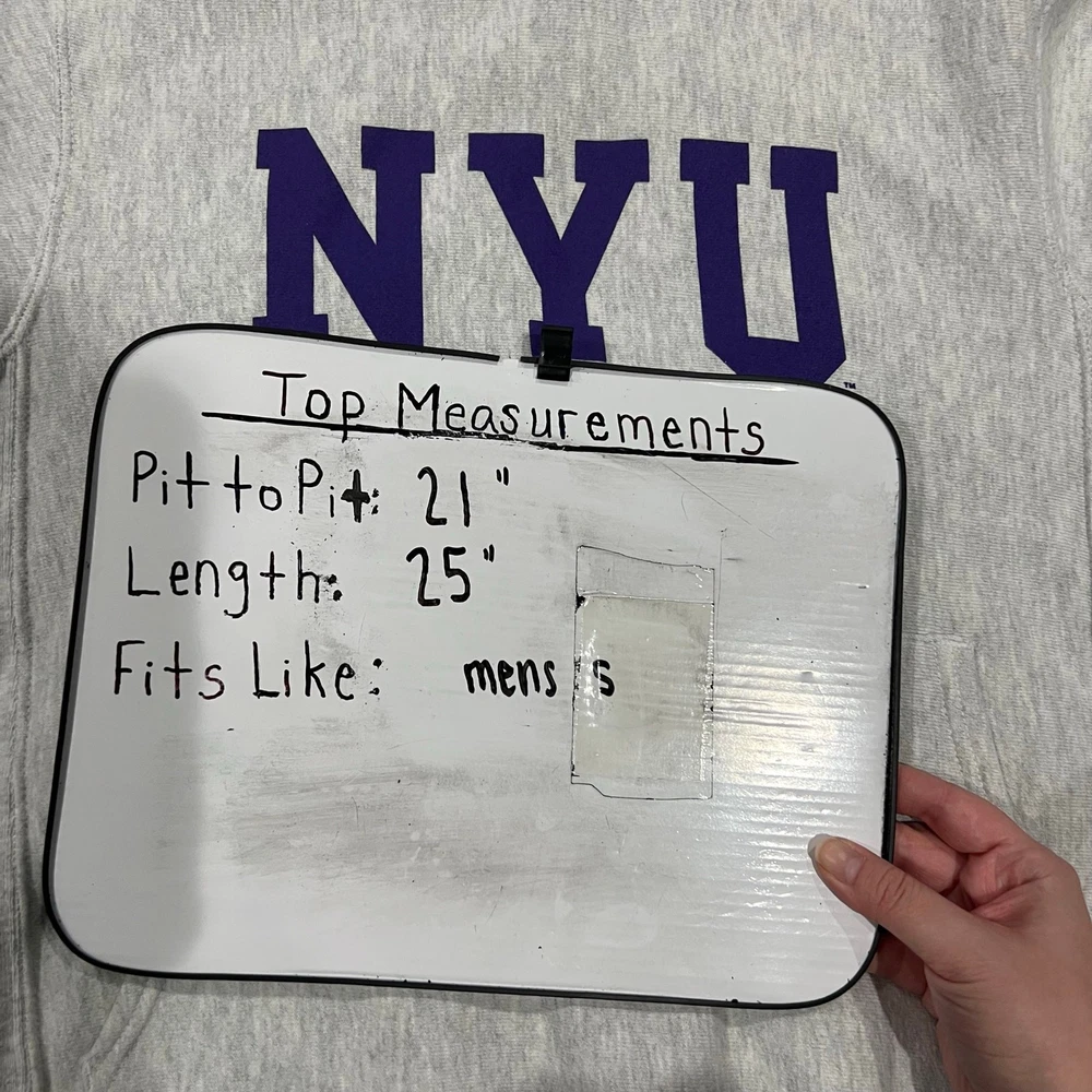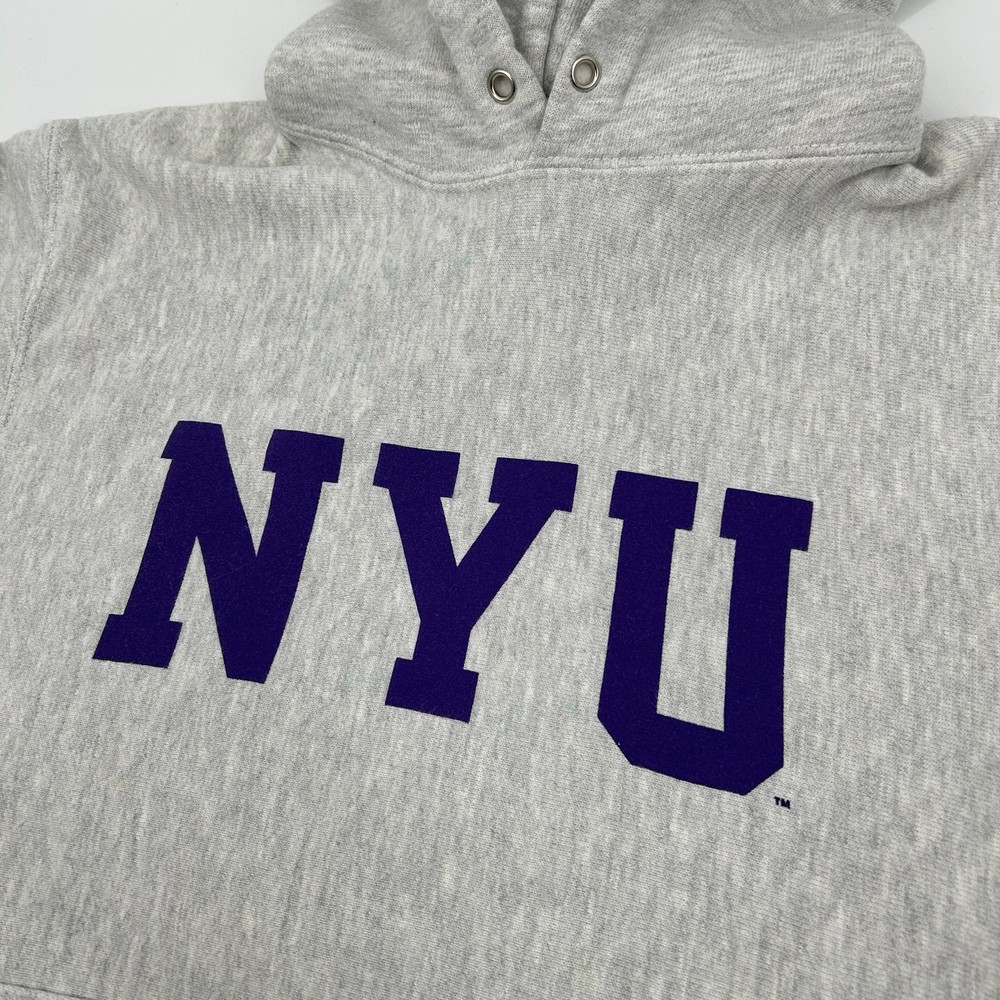 Vintage 90s y2k men's grey purple Champion reverse weave NYU New York University Bobcats hoodie sweatshirt pit to pit: 21" length: 25" Fit's like: men's S *hoodie strings missing* *pink dye stains on inside and outside of the hood* Item is in good used condition. Look at photos to see the condition. All, if any, flaws have been pictured. See the last photo for measurements along with my suggestion of what it fits like. Please know which measurements fit you prior to purchasing, and don’t just rely on my suggestion. Feel free to ask any questions! ***Item is cross posted on several platforms***