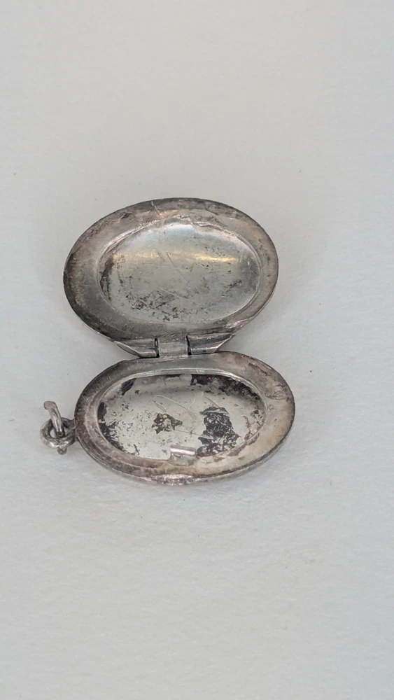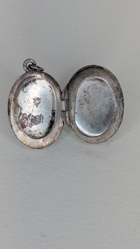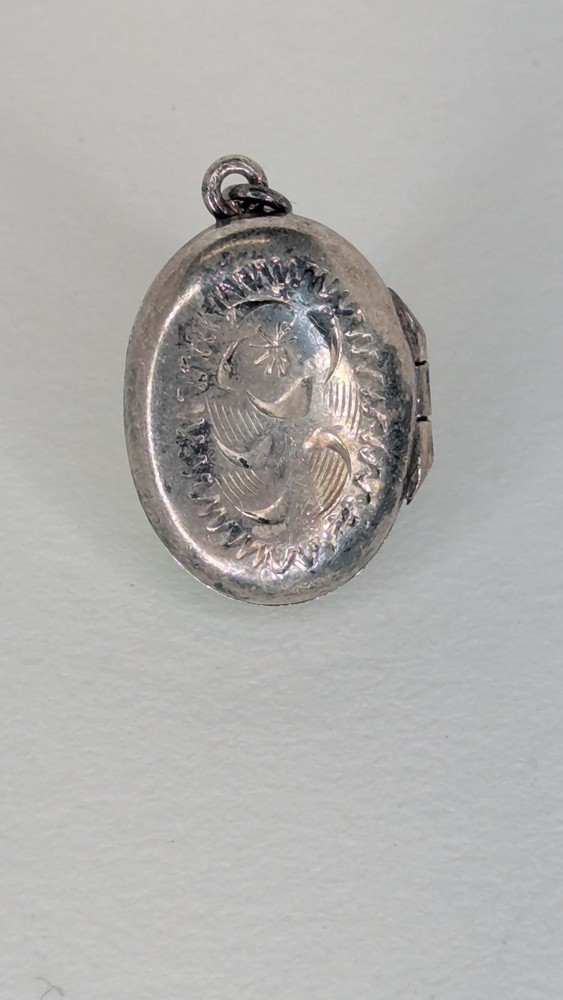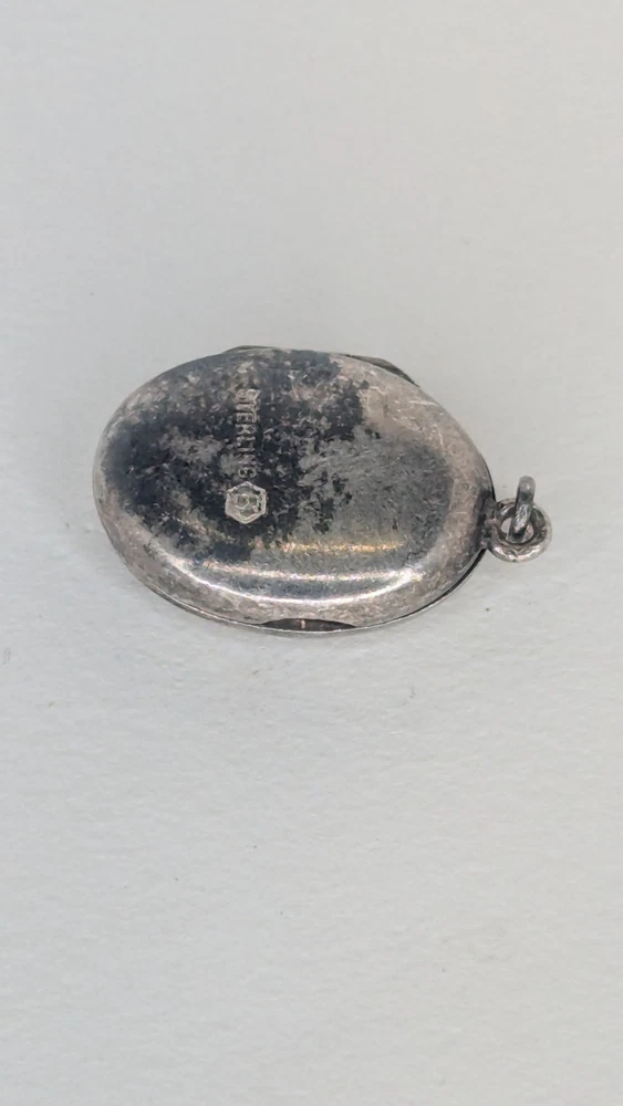 Vintage oval photo locket without chain. Marked Sterling alongside a 'B' in a hexagon, the makers mark for Birks of Canada at the time it purchased the company Burkhardt, between 1943-1950. Item shows some wear and tarnishing, a testament to its age. Delicate and beautiful, this piece holds history and endures as a charming votive of times gone by. Please check out my other listing and thank you for viewing!