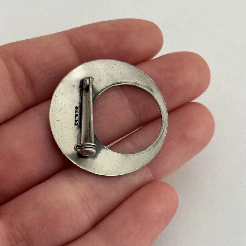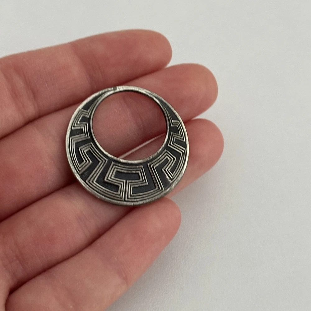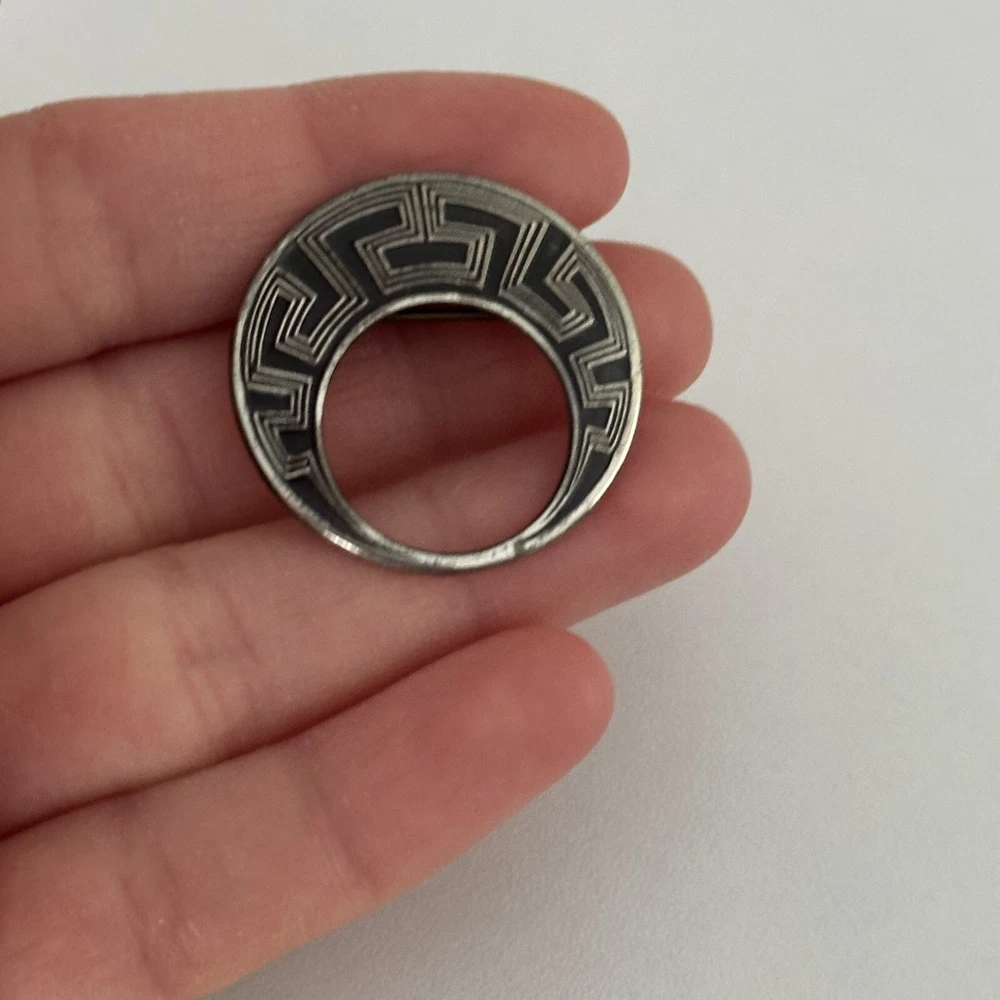 Vintage 925 Sterling Silver Abstract Aztec Design Open Circle Hoop Brooch Pin Length: Just over 1" Weight: 4 grams Signed: Sterling Good vintage condition. - Fast shipping, I ship the same or next business day! I also combine shipping. - Thank you so much for shopping with me and please check out my other jewelry listings, I post new pieces daily!