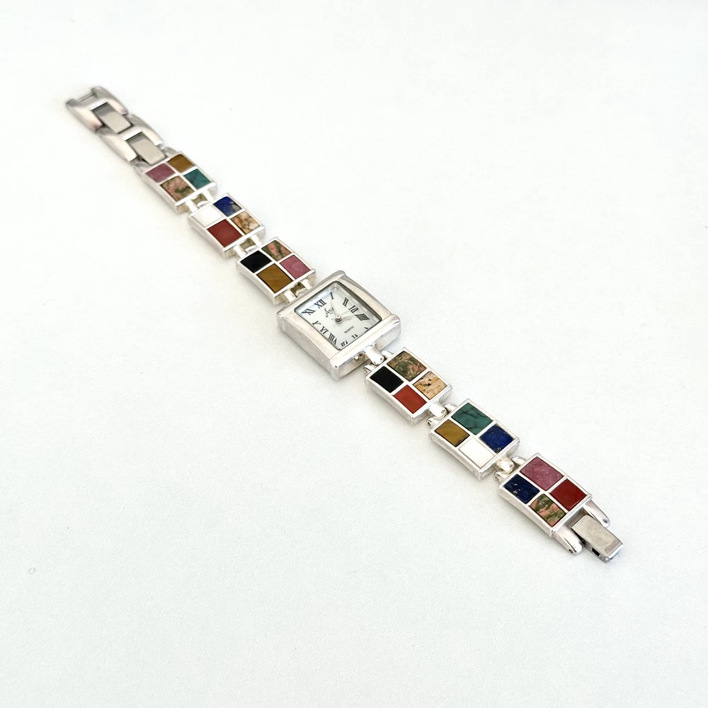 Vintage 925 Sterling Silver Aria Multi Gemstone Watch 7" Length: 7" Weight: 46.4 grams Signed: "OIT 925" on the chain part and "Aria Stainess Steel" on the clock part, Please note, needs a new battery. Otherwise in very good vintage condition. - Fast shipping, I ship the same or next business day! I also combine shipping. - Thank you so much for shopping with me and please check out my other jewelry listings, I post new pieces daily!
