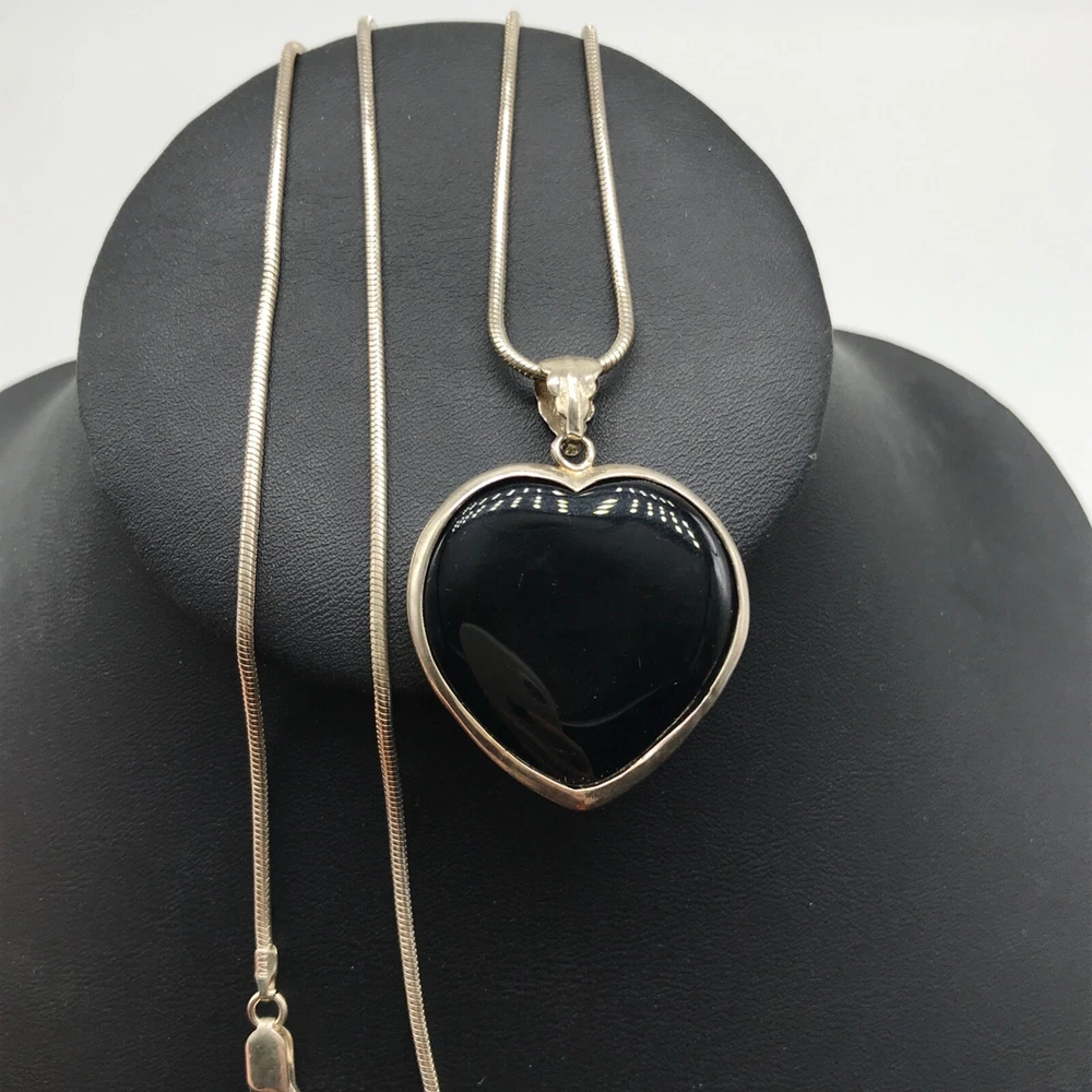 Vintage Solid 925 Sterling Silver Black Onyx Heart Pendant On Chain Necklace 24" I tem details: Chain length: 24" Pendant size: 1.70" long by 1.25" wide Weight: 19.8 grams Marking: 925 - Please note, most of my store's items are vintage or pre-owned. Most items are in very good/good estate condition, but please also view all pictures. Well cared for. All sterling silver is marked 925 or tested. Please feel free to ask any other questions you may have! I also combine shipping. - Jewelry is shipped packaged securely with a gift box or pouch . - I typically will ship same or next business day! - Thank you so much for shopping with me and please check out my other jewelry listings, I post new items daily!