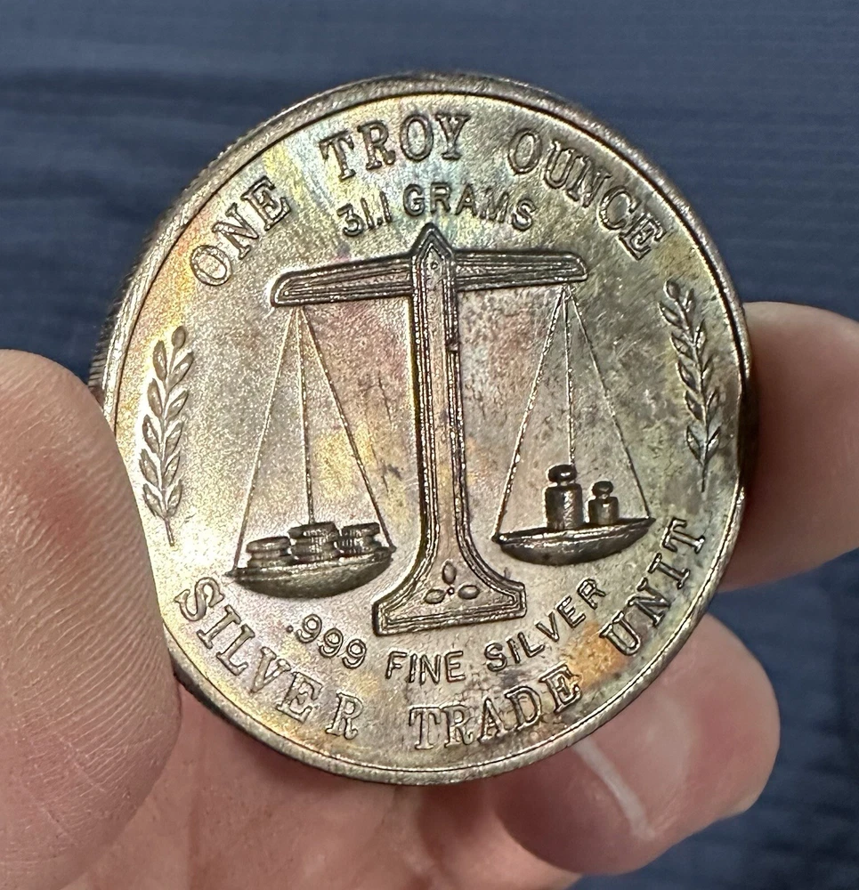 Total Precious Metal Content:1 ozBrand/Mint:SILVER TRADE UNITComposition:SilverPrecious Metal Content per Unit:1 ozShape:RoundYear:VintageCountry/Region of Manufacture:United StatesFineness:0.999Precious Metal Content:1 oz