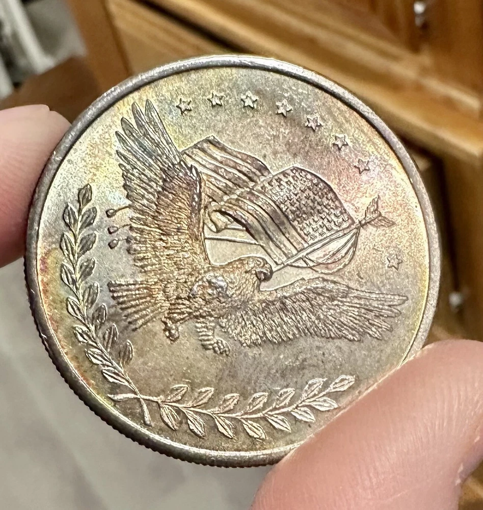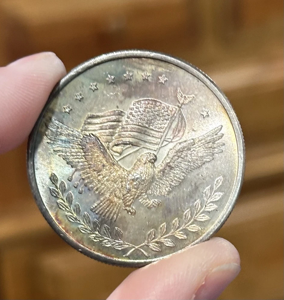 Vintage .999 Fine SILVER TRADE UNIT 1oz Round - TONED American Eagle Flag Coin