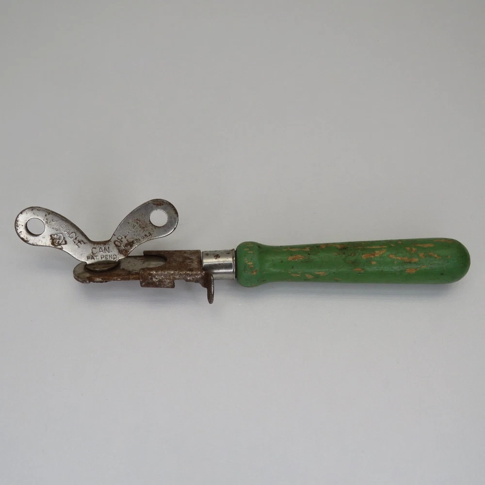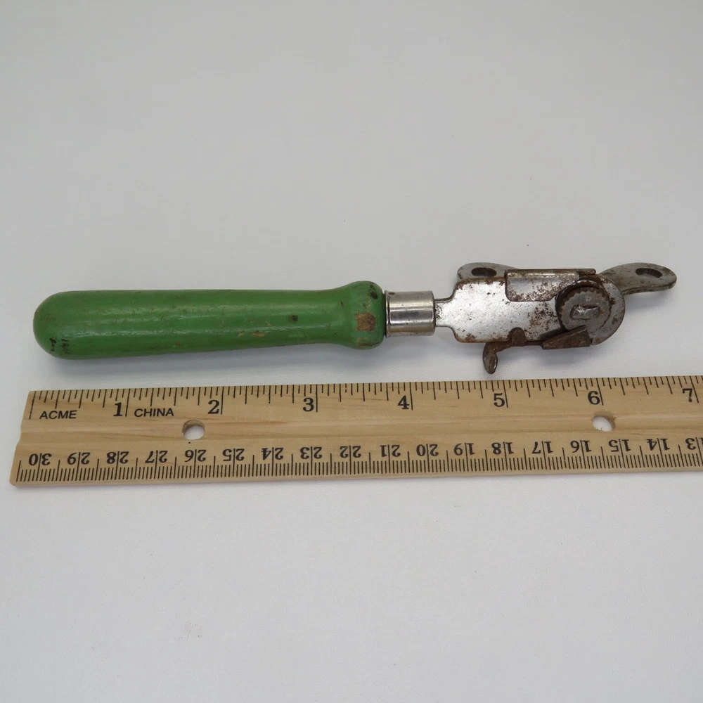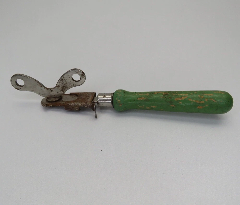 Set Includes: Opener Type: Can Opener Brand: A&J Item Length: 7.25 in Material: Metal, Wood Original/Reproduction: Original Number of Items in Set: 1 Color: Green Country/Region of Manufacture: United States