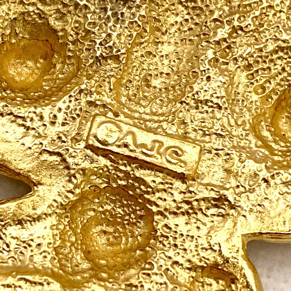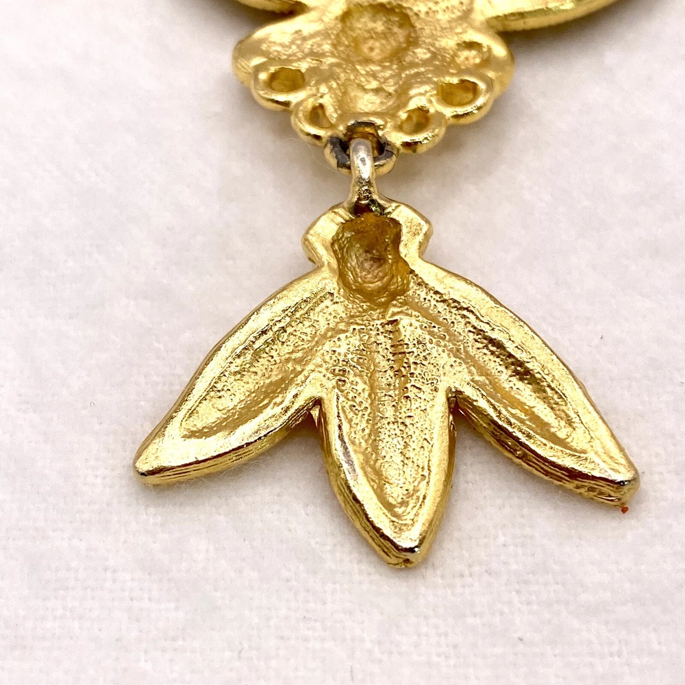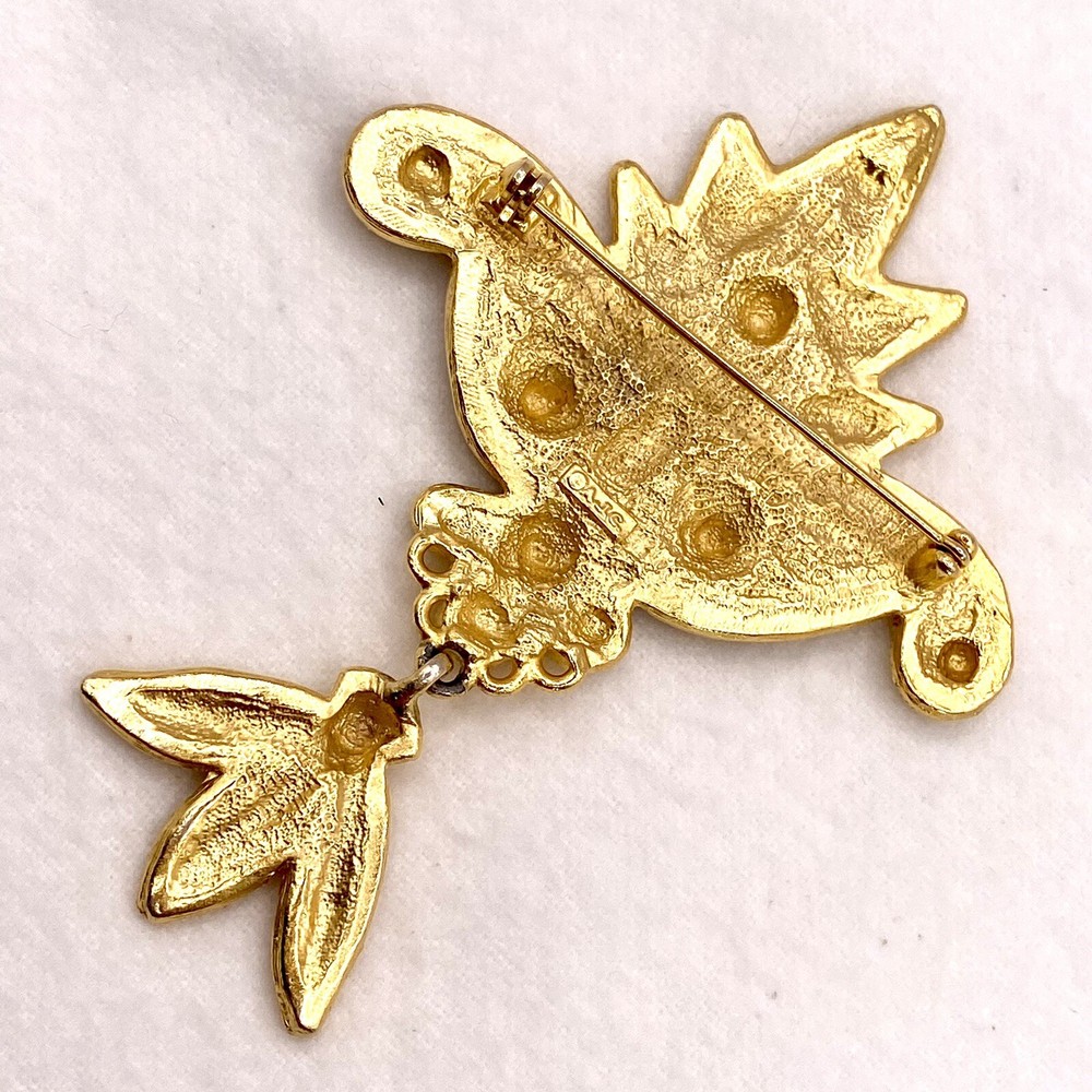 Add a touch of vintage beauty to your outfit with this stunning goldtone Les Fleur articulated scroll filigree large brooch pin from AJC. The intricate flower design is perfect for any occasion, whether it's a wedding, graduation, or just a casual day out. The pin is 3.75" in length and features eye-clean gemstones with excellent cut grade. This unique piece is perfect for those who love nature, art, and family & friends. It's a great addition to any collection and makes a perfect gift for Mother's Day, Father's Day, Christmas, or Valentine's Day. Whether you're a collector or just looking for a beautiful accessory, this brooch is sure to impress. Vintage Goldtone Les Fleur Articulating Scroll Filigree Large Brooch Pin State Y. This brooch is in excellent condition This is a pre-owned piece. It may require cleaning. There may be scratching, fading, chips, normal wear, missing stones, etc… See Photos. If you have any questions, please feel free to contact me via eBay w. Thank you for stopping by. Make sure to check out other items in my store. Your satisfaction is my priority. Have a wonderfnnul blessed day!