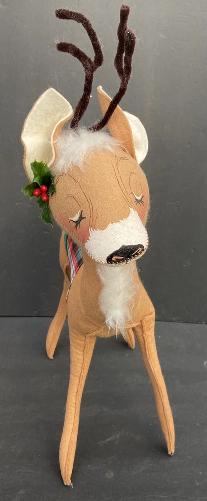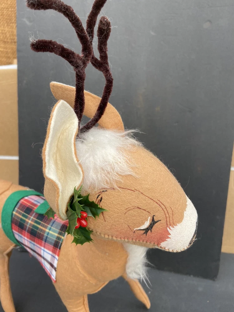 And great condition is this Annalee reindeer 19 7020 inches tall plus antlers 14 inches front to back