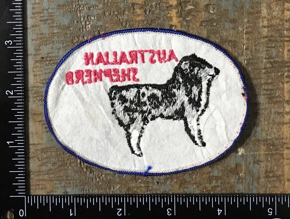 Vintage AUSTRALIAN SHEPHERD Dog Breed Pet Embroidered Sew-On Patch 1970’s Twill