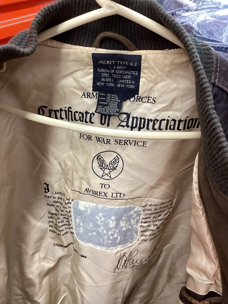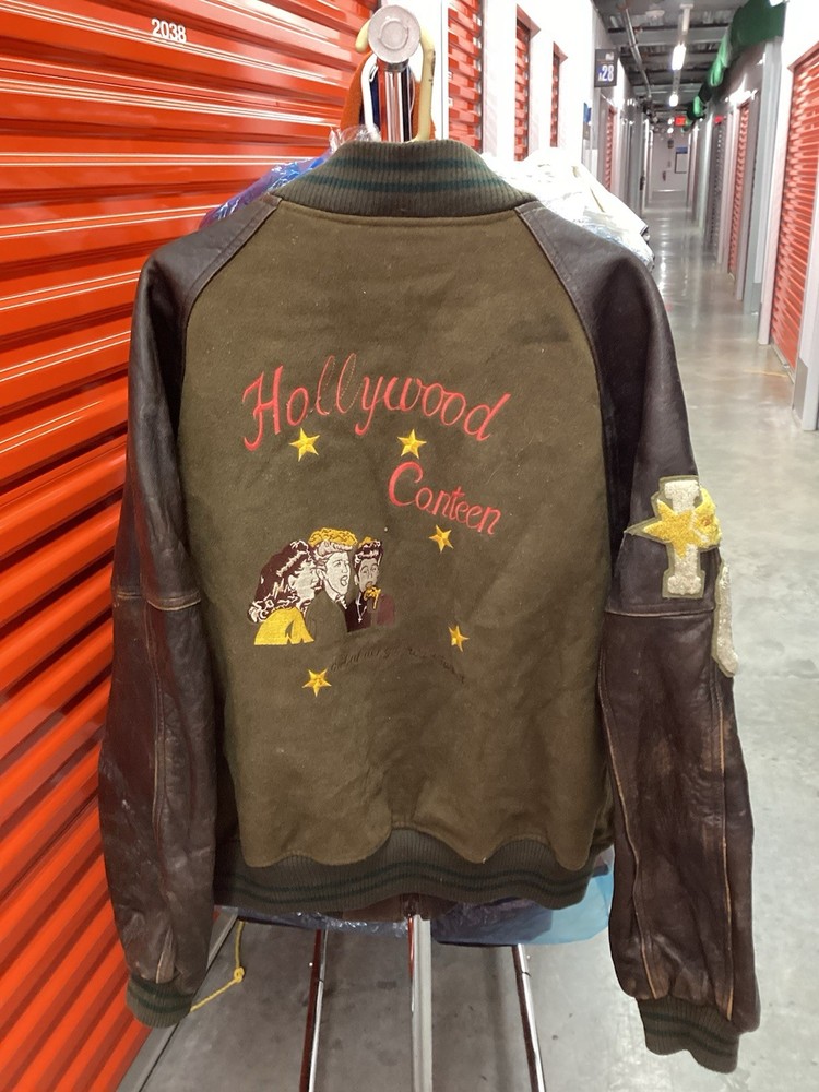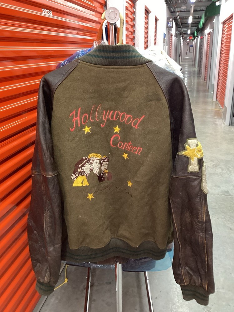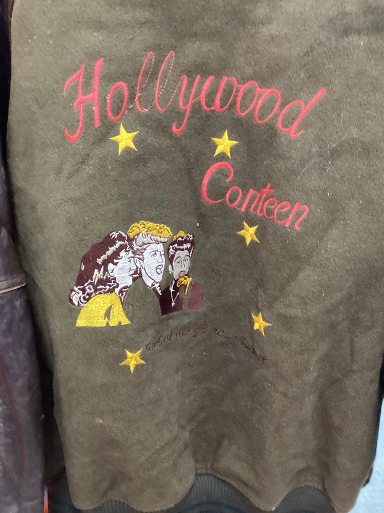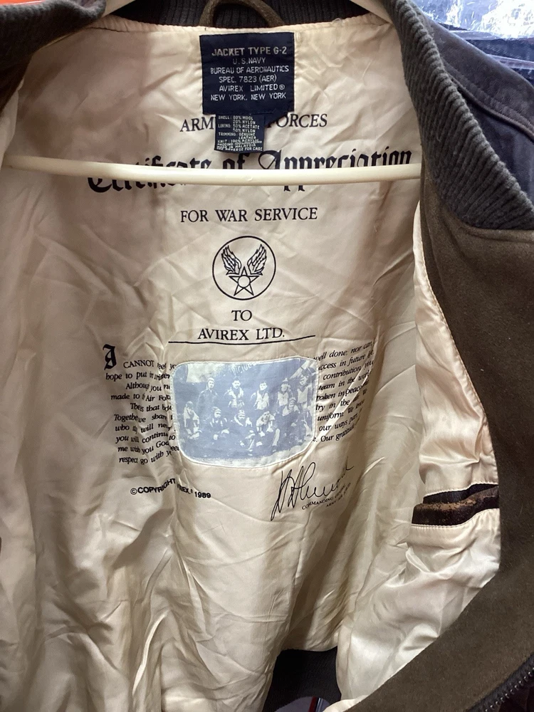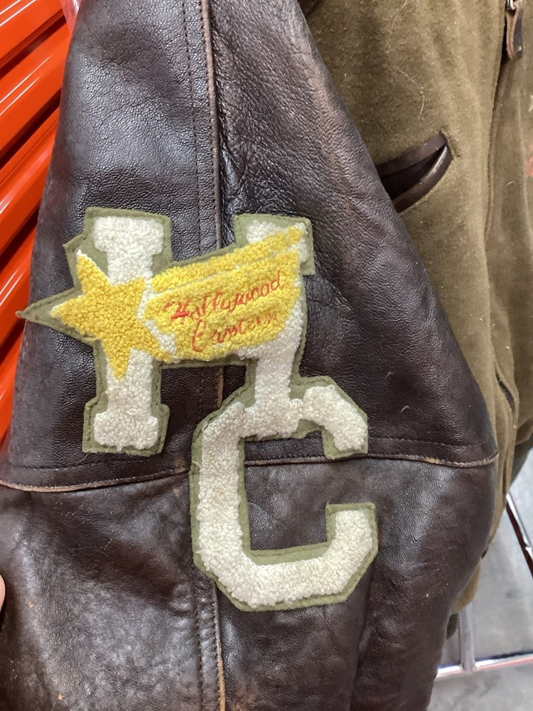 Vintage AVIREX Distressed US Navy Jacket Leather Wool Bomber Hollywood Canteen size L. Show signs of wear. Has some stains in front , rear and some on sleeves. See pictures for condition.