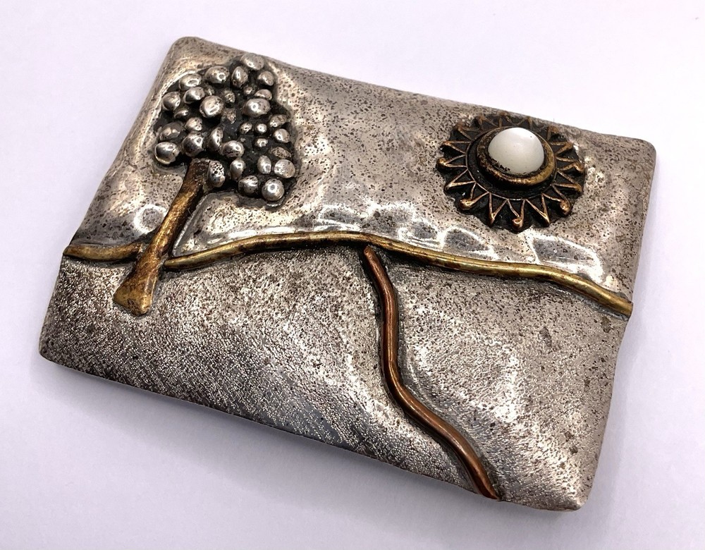 Vintage Abstract Landscape Tree Sun Sterling Silver Brooch Pin