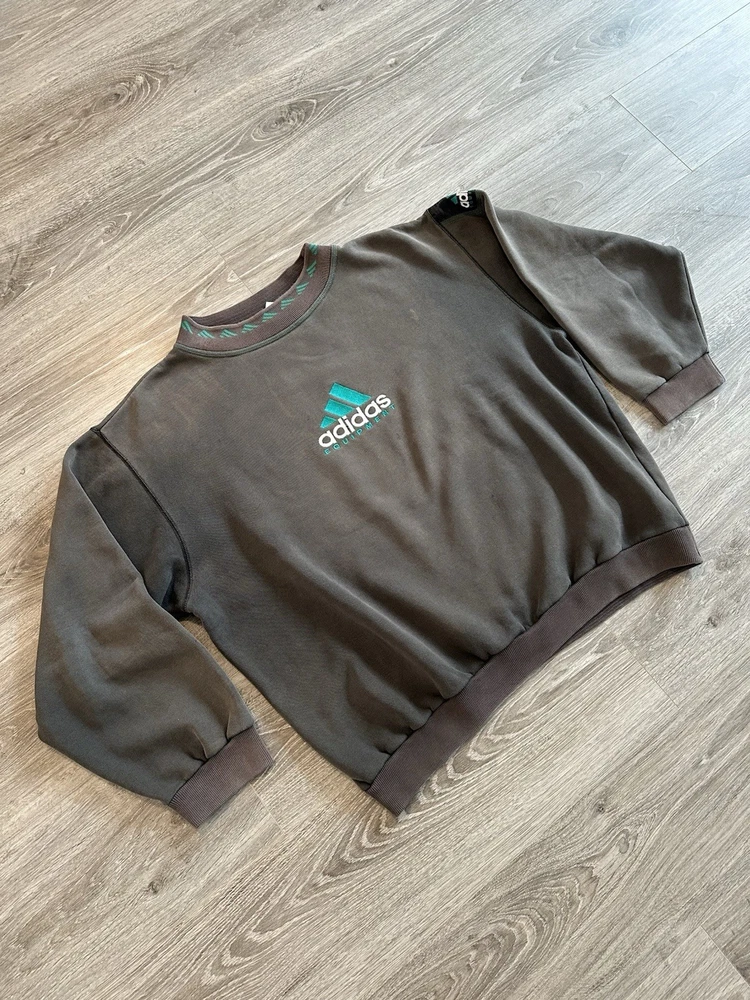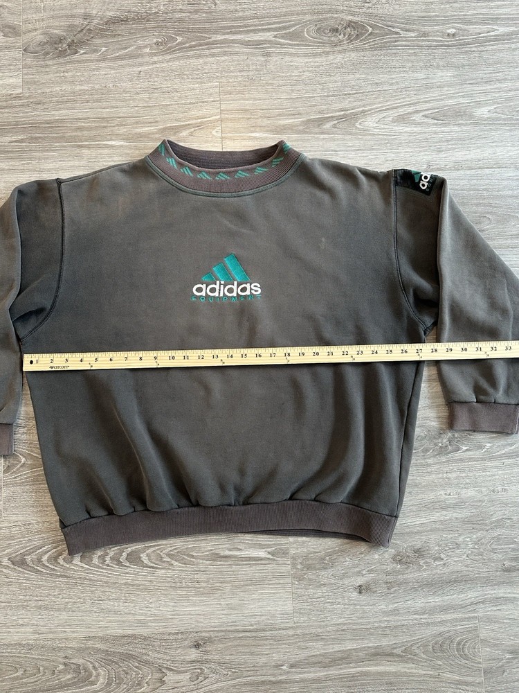 Elevate your wardrobe with this rare vintage Adidas sweatshirt from the 90s. It boasts a timeless black colour, complemented by the iconic embroidered Adidas logo that adds a touch of retro style. Made from a comfortable cotton blend, this pullover is perfect for all seasons and features a classic roundneck and long sleeves for a relaxed fit. Ideal for sports enthusiasts, this sweatshirt is suitable for gym training, football, and soccer. As part of the Adidas Originals product line, it embodies the spirit of the 90s, making it a must-have for fans of the era. Whether you're out for a casual day or gearing up for a game, this embroidered logo sweatshirt is a versatile addition to your activewear collection. Measurements shown in photos.