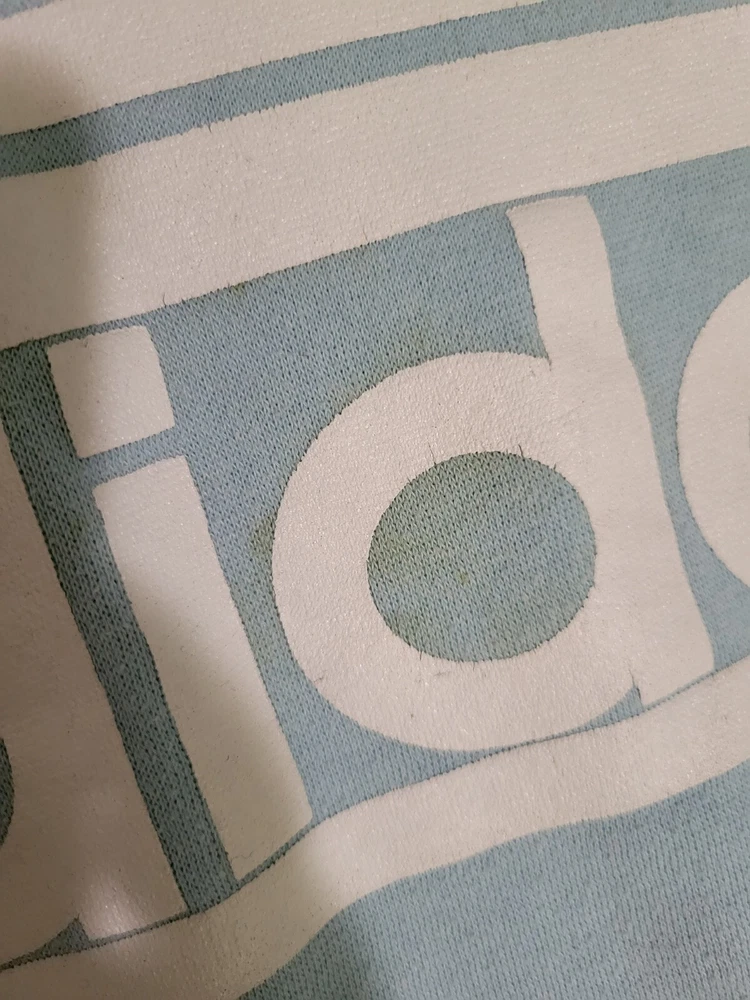 This item is stained (pictured). I have washed item but not stain treated. This vintage Adidas hoodie is a must-have for any style enthusiast. Featuring a unique graphic print and a relaxed fit, this blue pullover is perfect for any occasion. The long sleeve hoodie is made of a comfortable cotton blend material and is machine washable for easy care. The hoodie comes with button closure and features elbow patches with the iconic Adidas logo. The nautical, grunge, and preppy theme of the hoodie make it a versatile addition to any wardrobe. This hoodie is perfect for men who want to add a touch of classic and retro style to their outfit. Measurements are pictured as the size is hard to see.