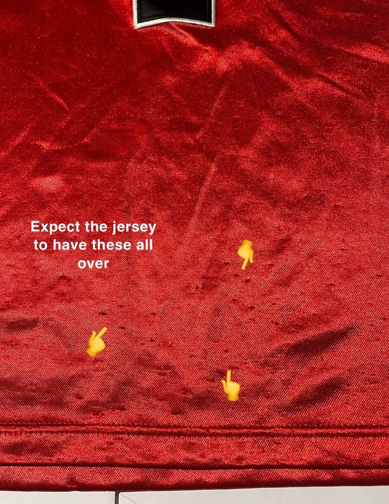 PLEASE READ FULL DESCRIPTION, AND MAKE SURE TO SEE ALL PHOTOS!!!! Pre-owned *THIS JERSEY WAS THRIFTED (NOT SURE ABOUT ITS AUTHENTICITY) I CAN PROVIDE MORE PICS IF NEEDED* Size: XL ALWAYS USE MEASUREMENTS AS A REFERENCE Body Length: 30.5” in Pit to Pit: 23.5” in Color: Red Material: Polyester Lightweight Breathable *Jersey show flaws and signs of wear* NO RETURNS. IF YOU HAVE ANY QUESTIONS ABOUT THIS ITEM SEND ME A MESSAGE. This item was carefully sourced, made ready, photographed, stored, and will be shipped with the intentions that you will be satisfied with your purchase. I list every item to the best of my knowledge, in a consistent, and easily understandable format. Also, even tho I revise every item and try to find major flaws, there might be flaws that I won’t be able to see. I want to bring value and offer the best to all of my customers. I want to take this opportunity to express my gratitude for viewing this item and taking interest in my small business.