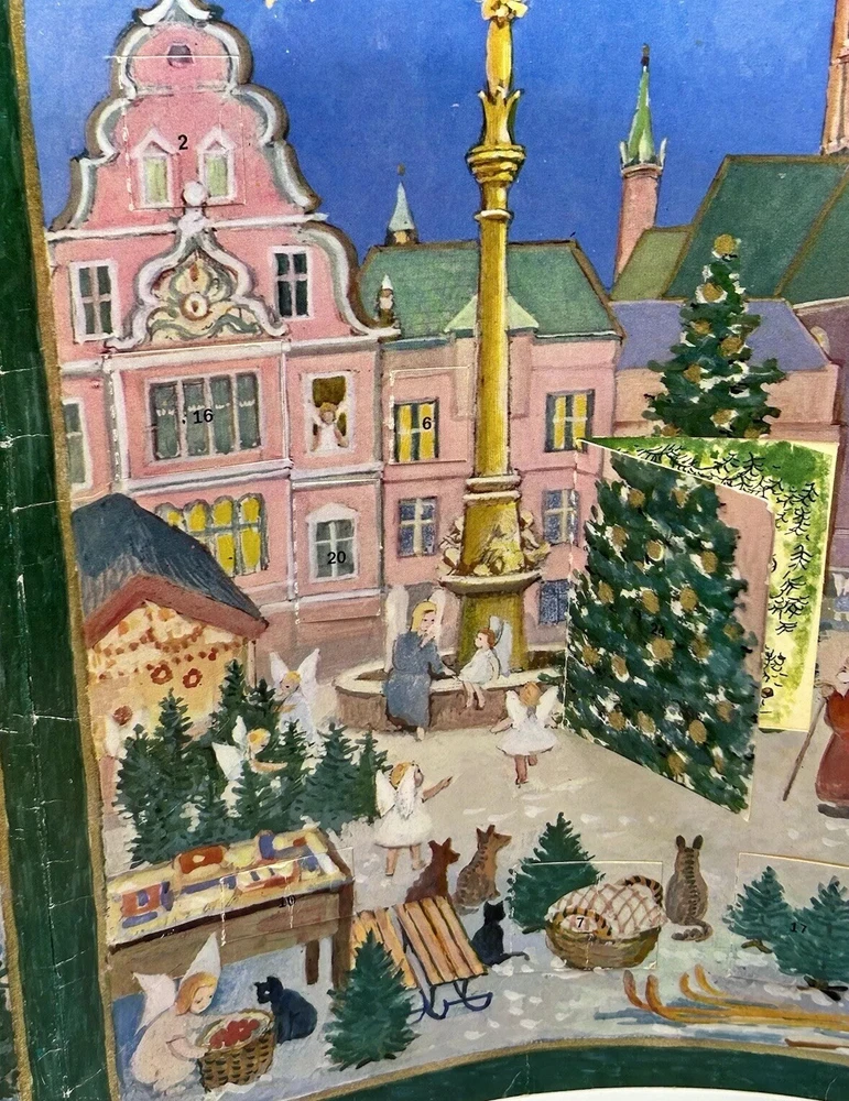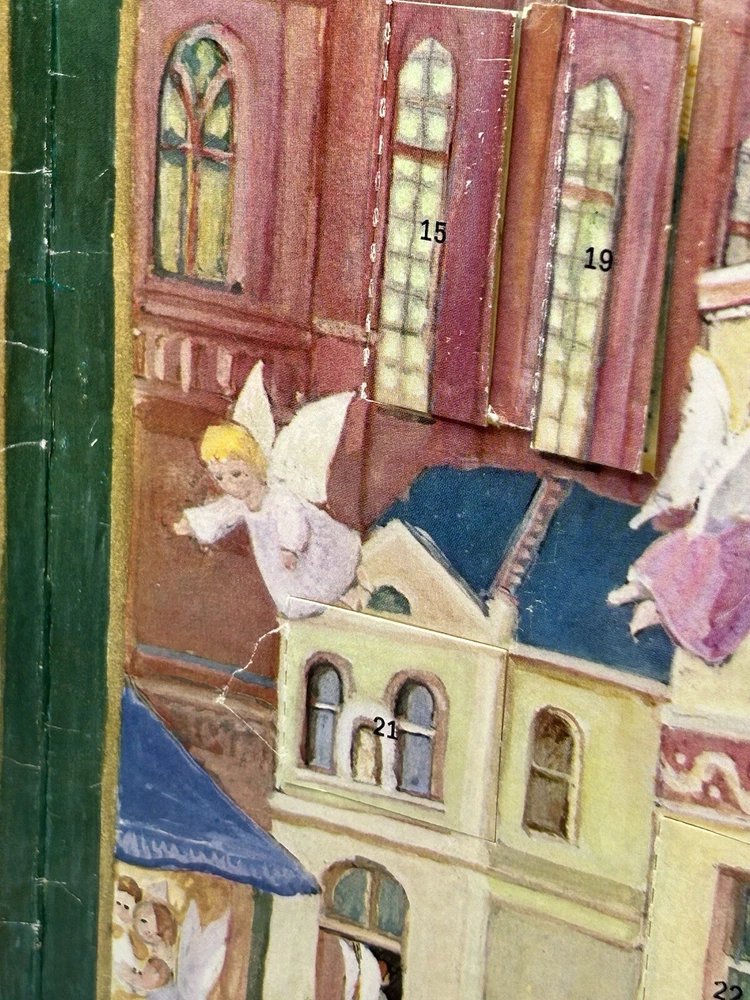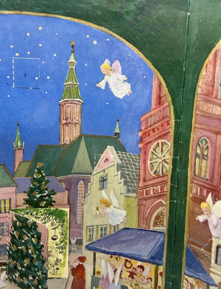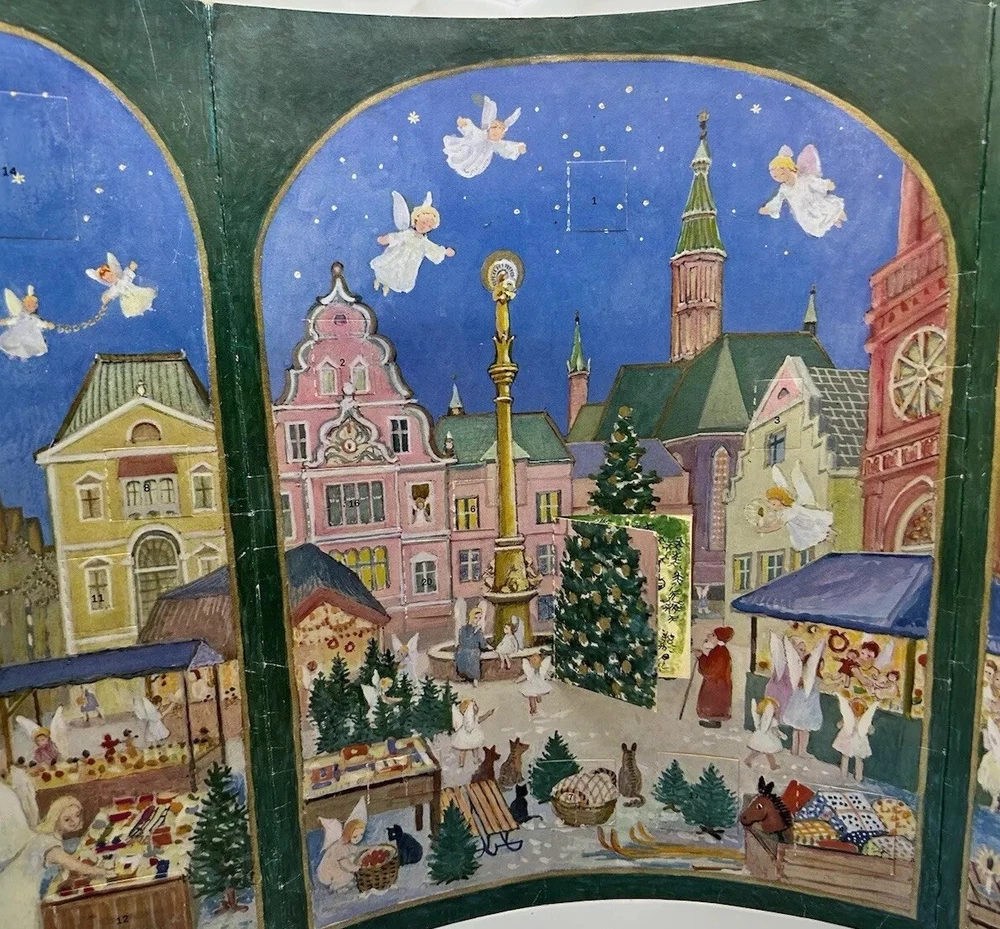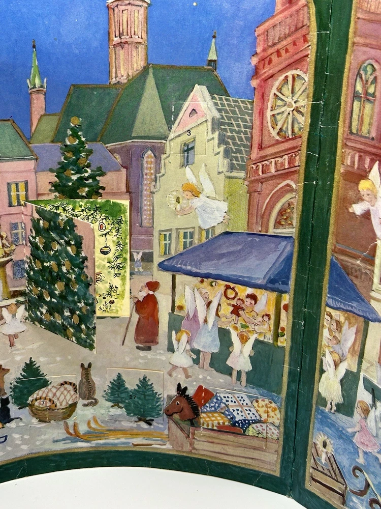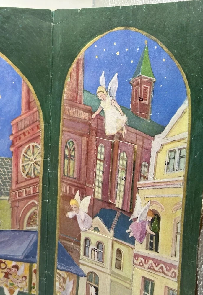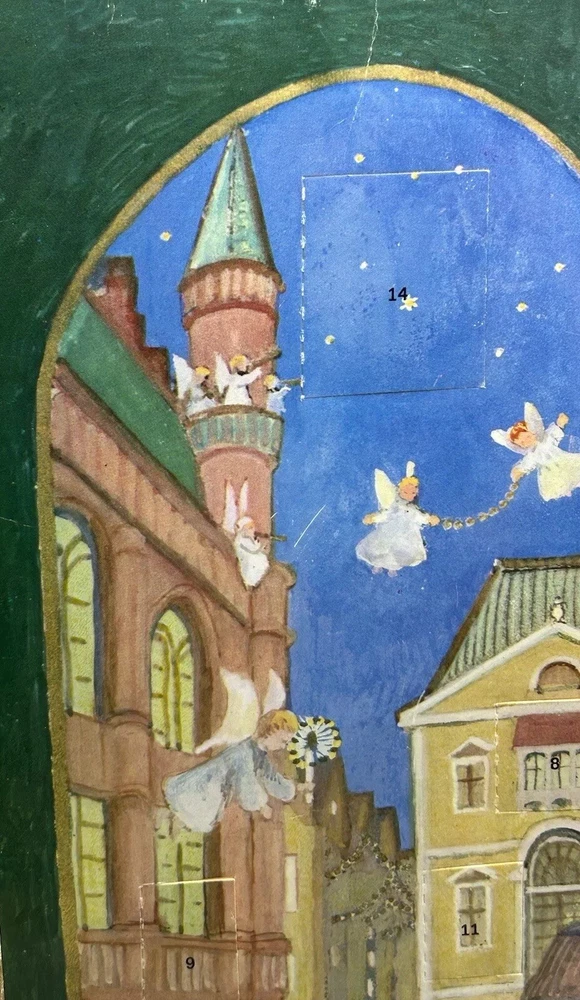 Vintage Advent Calendar By Ediciones Cimera Printed In Spain K 6413 This beautiful calendar is in nice used condition with some creases and a few small tears. It measures 12" x 9 1/4" closed and 19 3/4" x 12" open. Please see photos for details. Please let me know if you have any questions. I use recycled materials in shipping whenever possible. Measurements are approximate. Smoke free home.