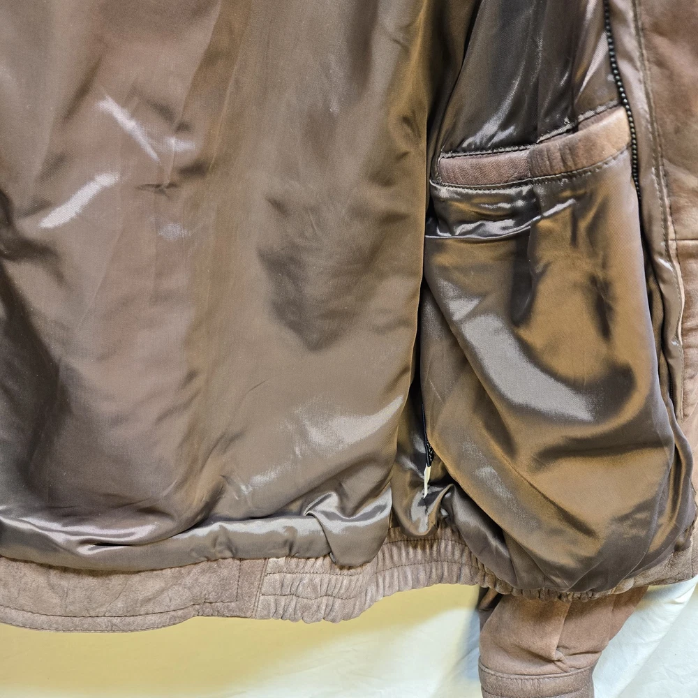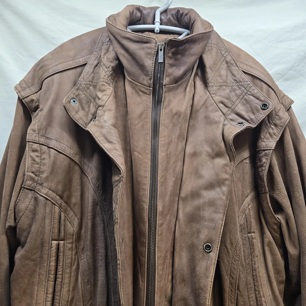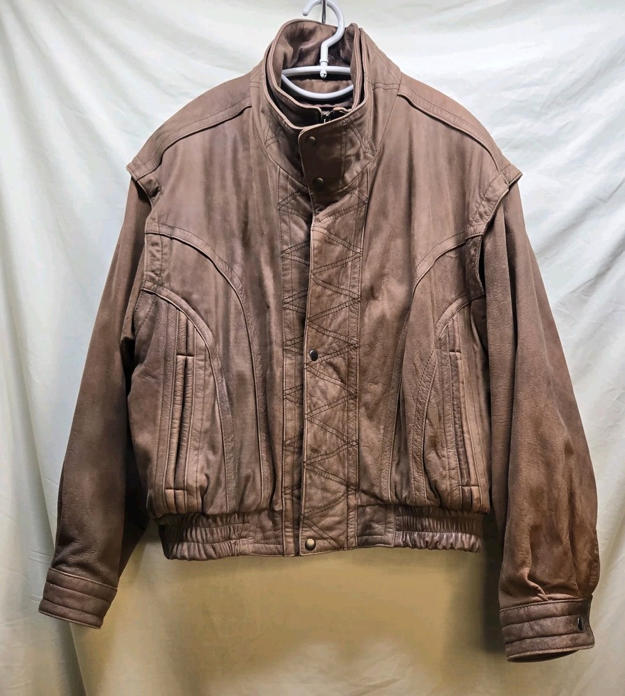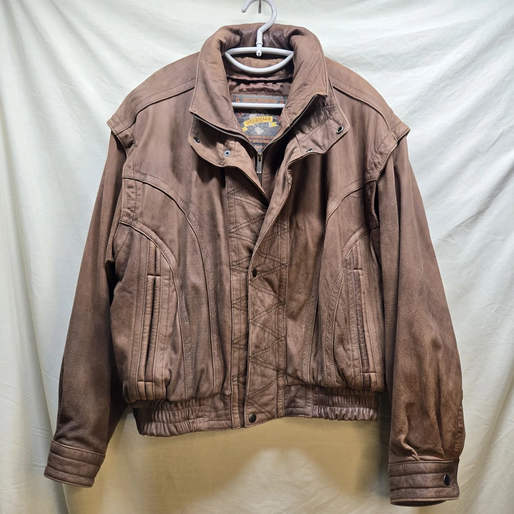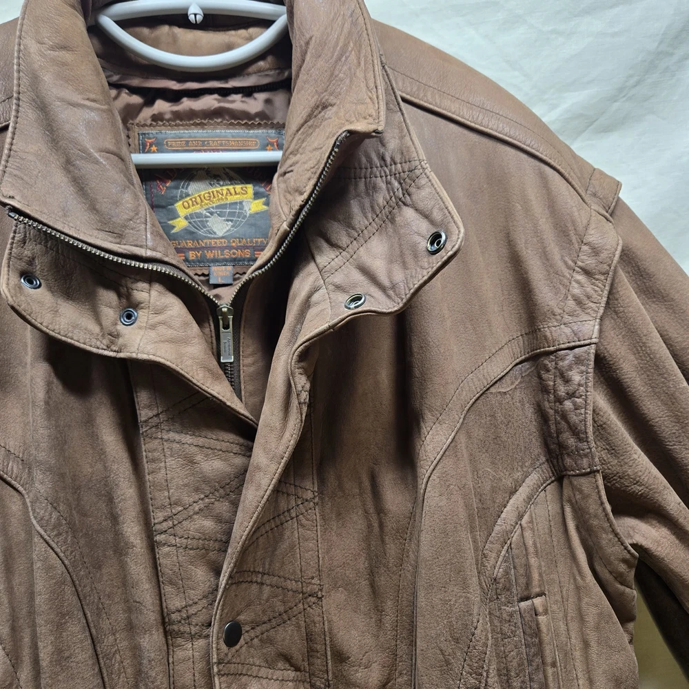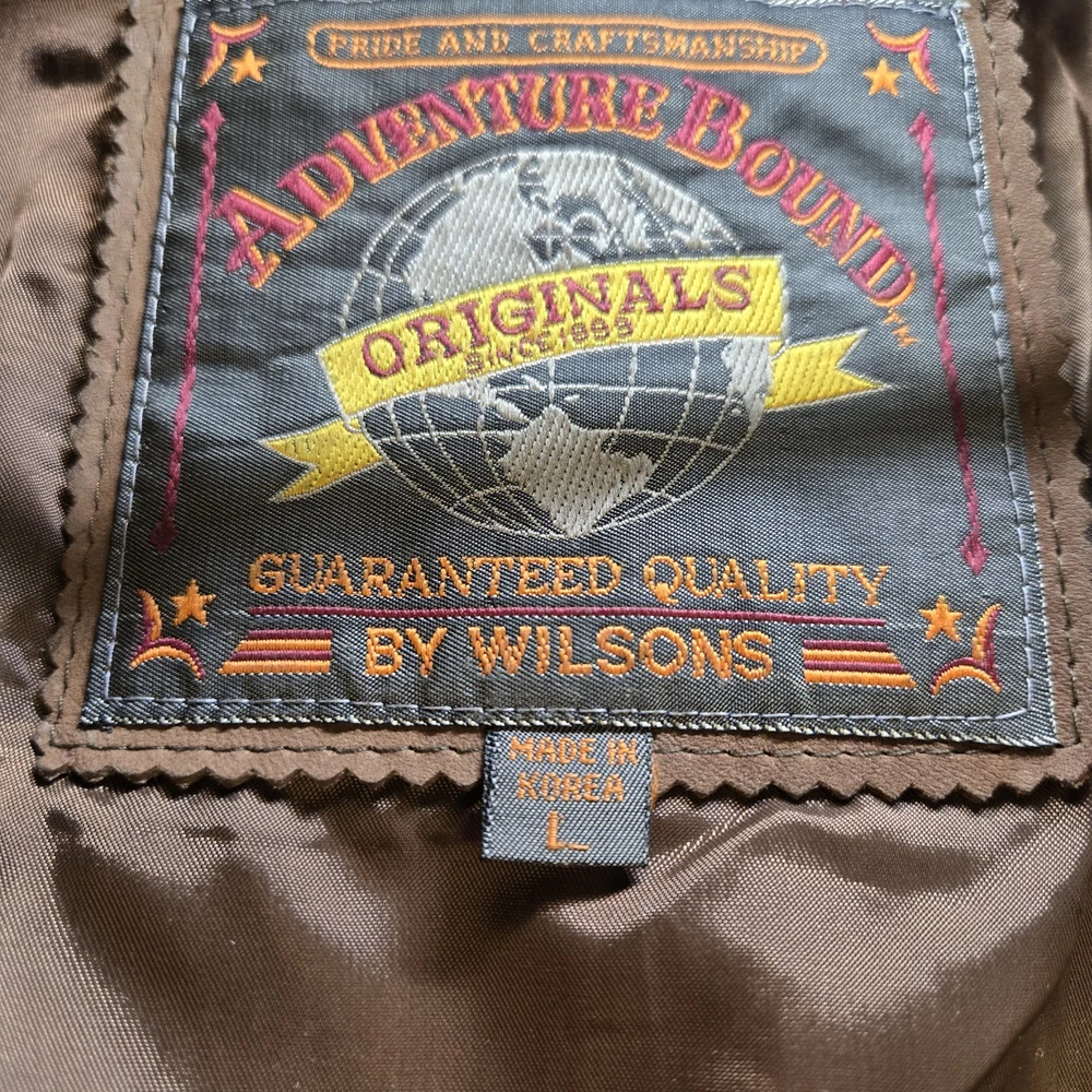 No inside liner other than that it's in great condition! No holes or damages! Very nice for riding your motorcycle or during this winter season. It's heavyweight will make you warm. Buy responsibly thank you! This Vintage Adventure Bound by Wilsons Heavy Brown Leather Bomber Jacket in Men's size LARGE is a classic piece perfect for casual, travel, or workwear occasions. Made from high-quality leather with a nylon lining, this jacket features a full zip closure and a spread or stand-up collar. The jacket's mid-length design, solid brown color, and 90s motorcycle theme make it a stylish and functional choice for the winter, fall, or spring seasons. Adventure Bound branding, along with button and zipper accents, add a touch of vintage flair to this timeless bomber jacket.