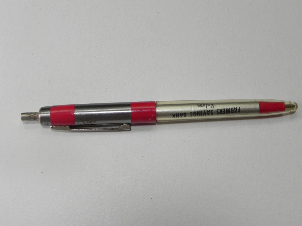 Vintage Advertising Pen ~ Farmers Savings Bank ~ Kalona, Iowa Good cosmetic condition - please see photos. Ink is dry, but the pen is mechanically sound. Age-related wear typical of a vintage item. Vintage, retractable ballpoint pen. Unipeco brand. Made in the USA. This style of pen was manufactured from the 1950s to the 1980s. Reduced shipping available when purchasing multiple pens at the same time! Visit our store for more items like this!