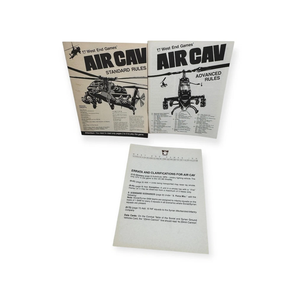 This vintage board game from West End Games is a must-have for any war game enthusiast. With a focus on Air Cav Helicopter Warfare in the 80s, this game offers a unique glimpse into the past. The game includes all necessary components for play.