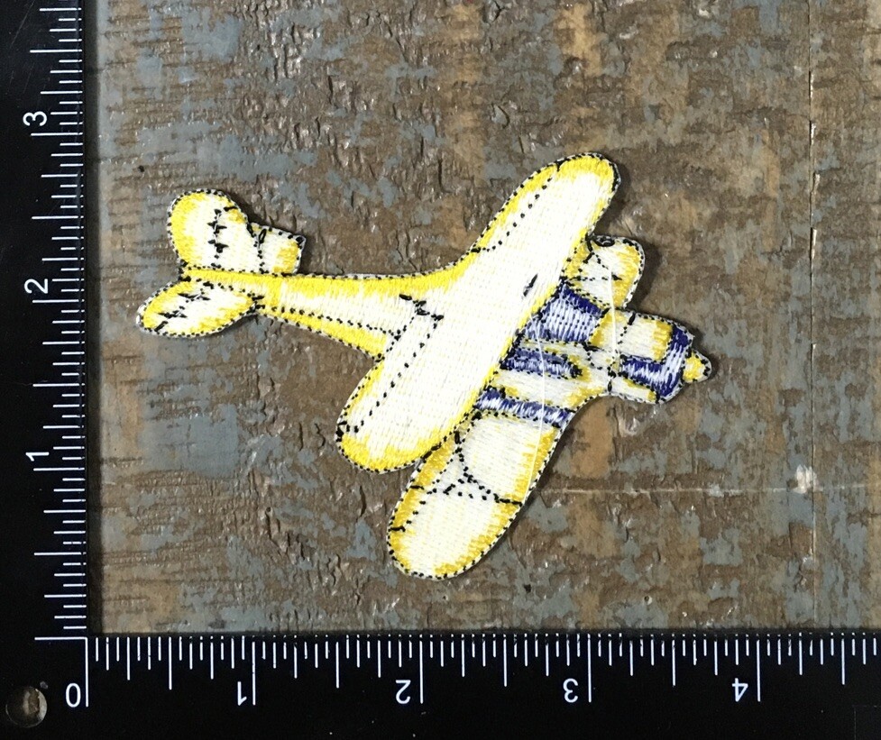 Vintage Aircraft Aviation Plane Yellow Blue Embroidered Iron-On Patch