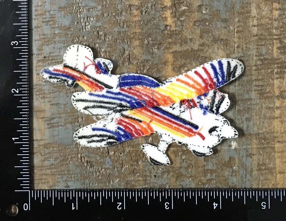 Vintage Airplane Aircraft Aviation Embroidered Iron-On Patch White/Multicolor