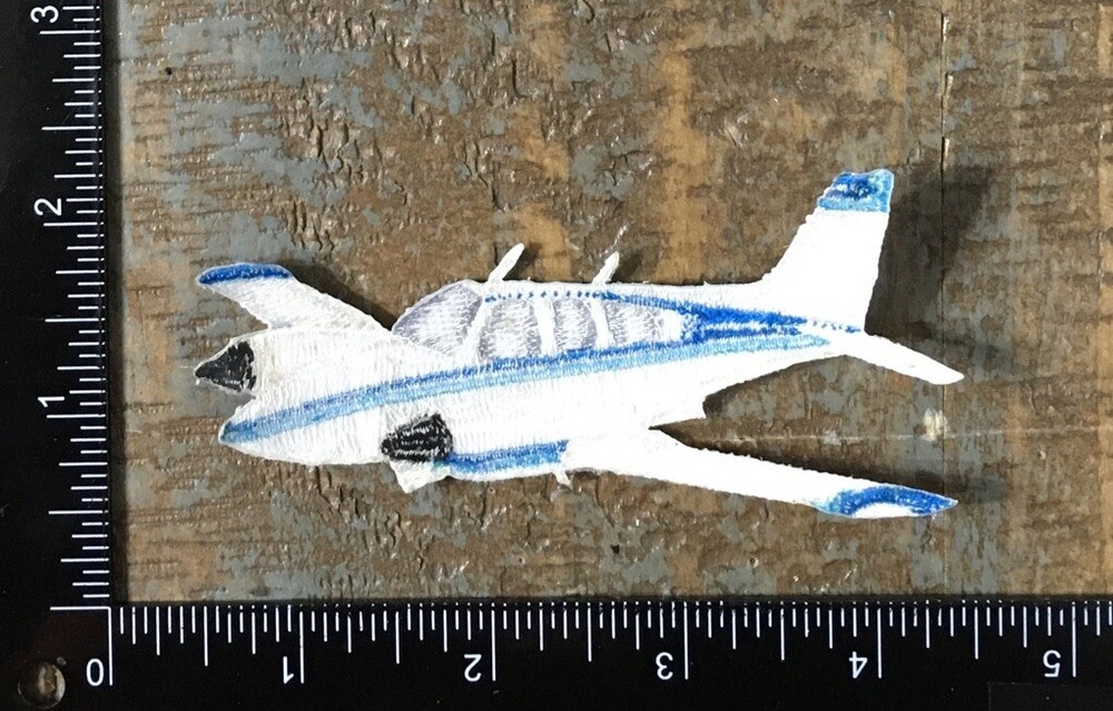 Vintage Airplane Aviation Embroidered Iron-On Patch Light Blue White