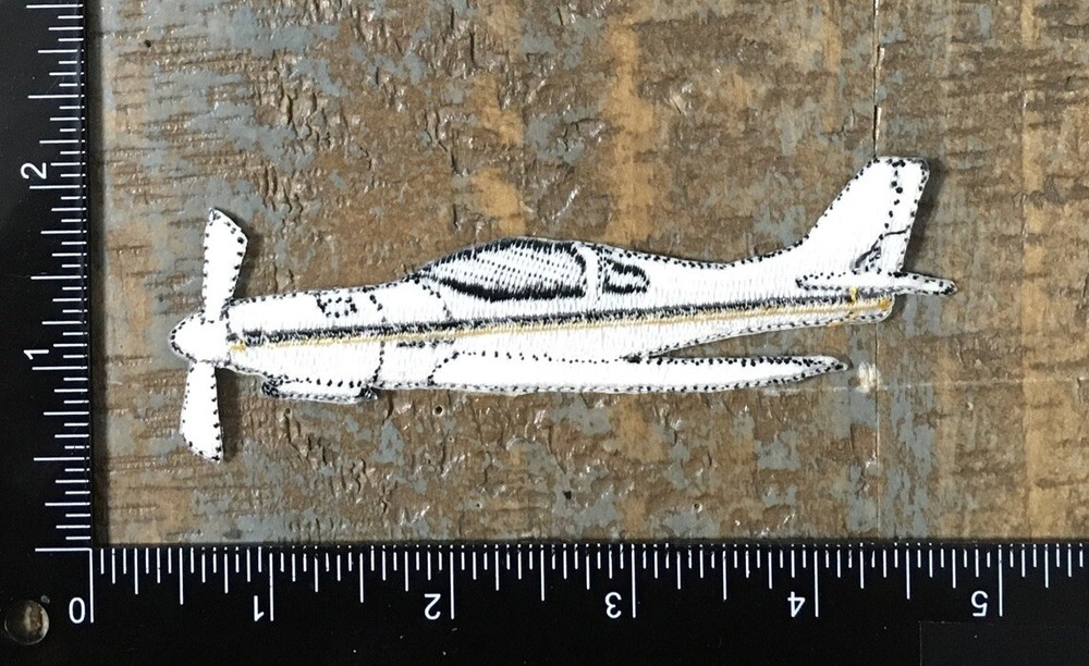 Vintage Airplane Aviation Embroidered Iron-On Patch White Gold Design
