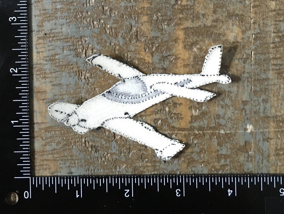 Vintage Airplane Aviation Embroidered Iron-On Patch White Gray Design