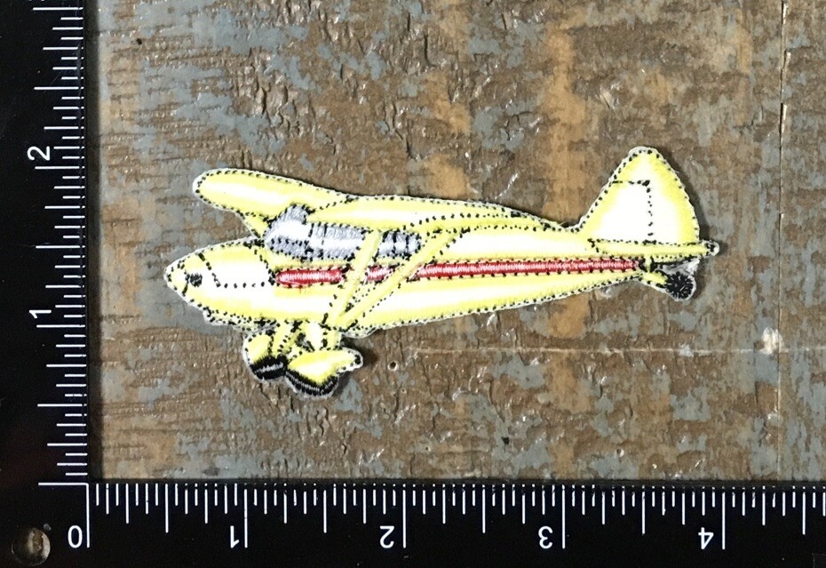 Vintage Airplane Aviation Embroidered Iron-On Patch in Light Yellow and Red