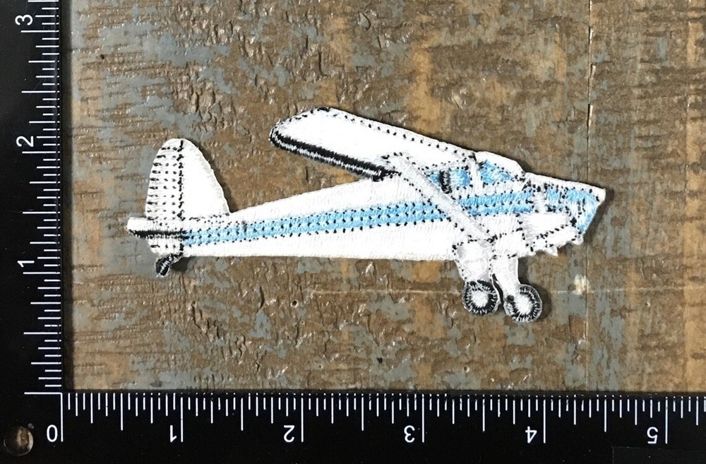 Vintage Airplane Aviation Embroidered Iron-On Patch in White and Blue