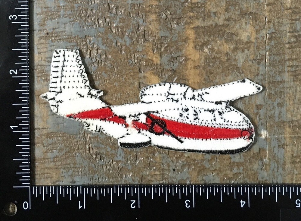 Vintage Airplane Aviation Embroidered Iron-On Patch in White and Red