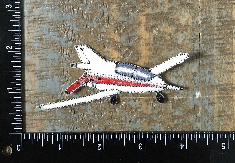 Vintage Airplane Embroidered Iron-On Patch in White and Red for Aviation Enthusiasts