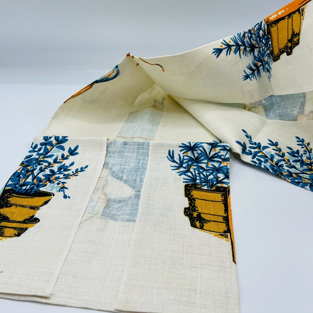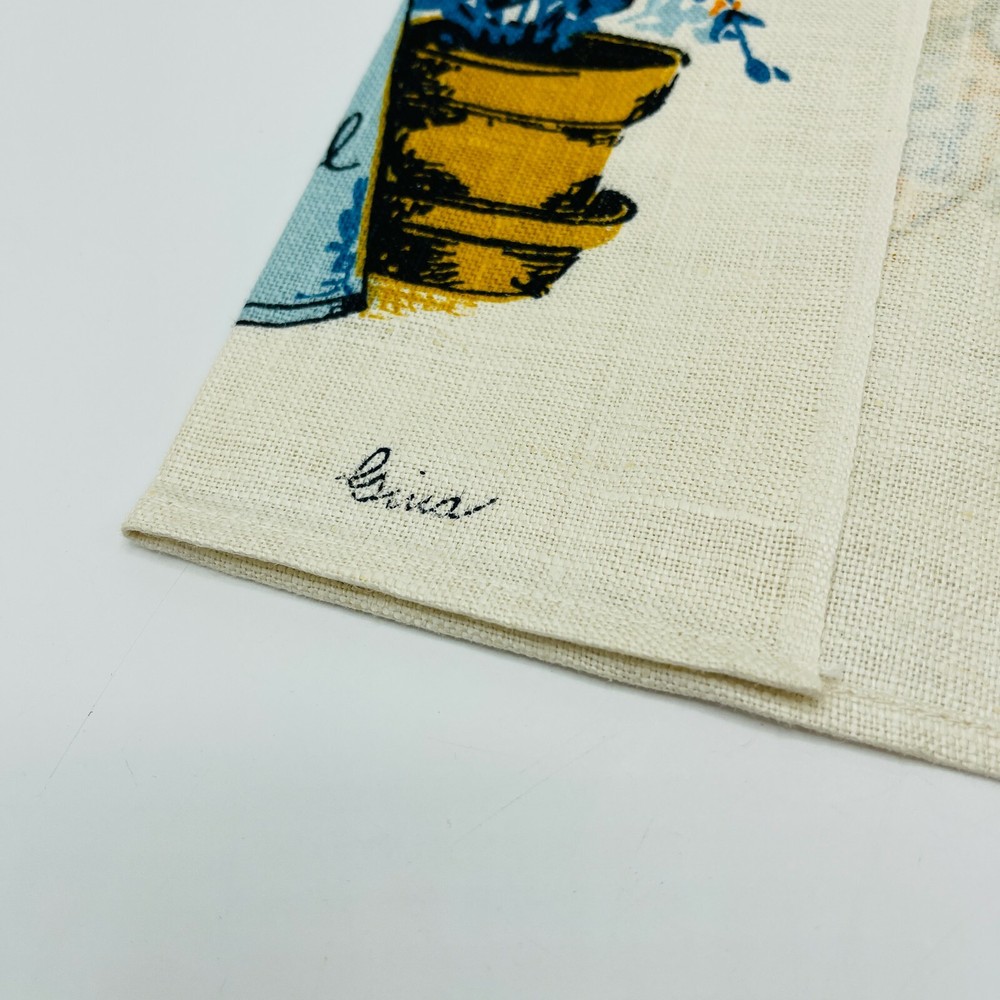 Vintage All Pure Linen Tea Towel Dish Towel Signed Gina Cottagecore 16x29 MCM
