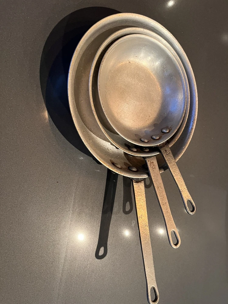 These pans would not be good on an electric stove as the bottom is not completely flat. Well-seasoned. Please see all photos and thanks for looking!