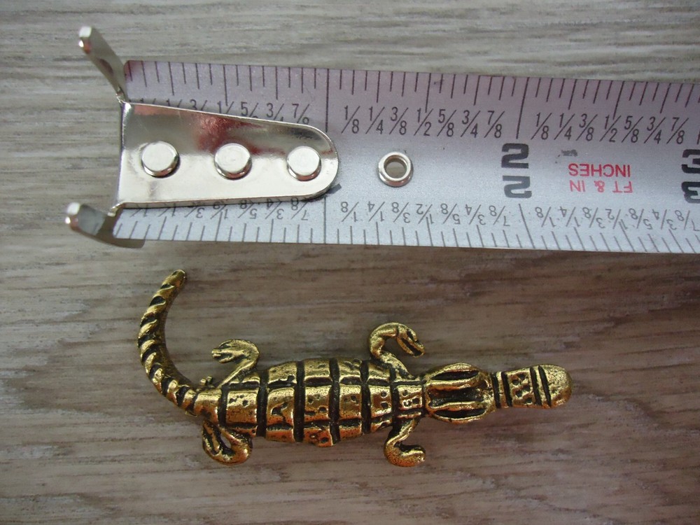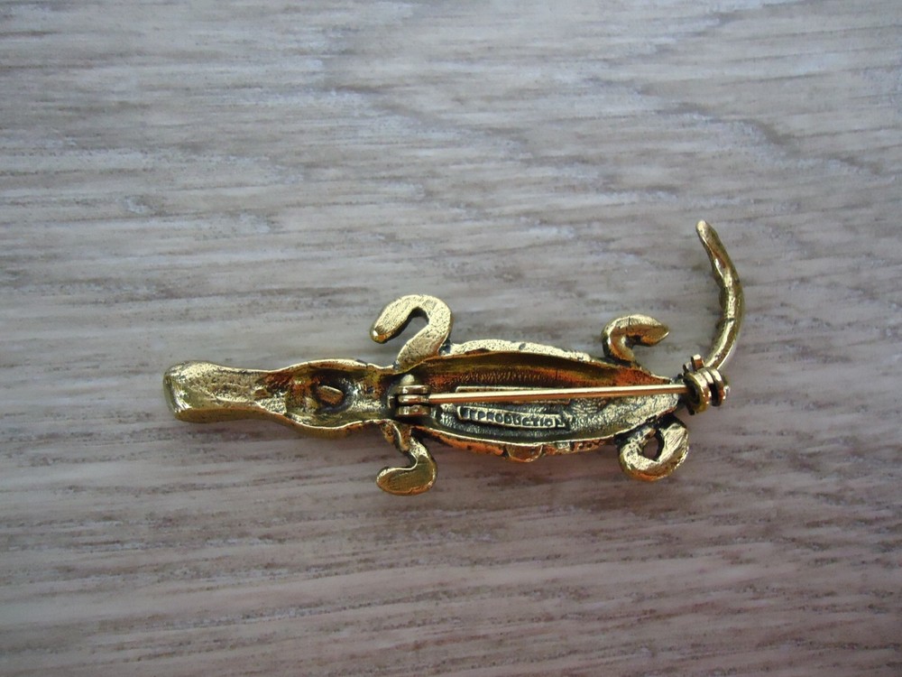 This vintage pin is absolutely stunning! The detailed crocodile design adds such a chic touch to my jackets and bags. The gold tone gives it a luxurious feel without the high price tag. I've received so many compliments already - it's definitely my new favorite accessory!