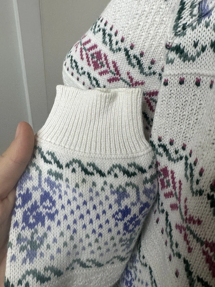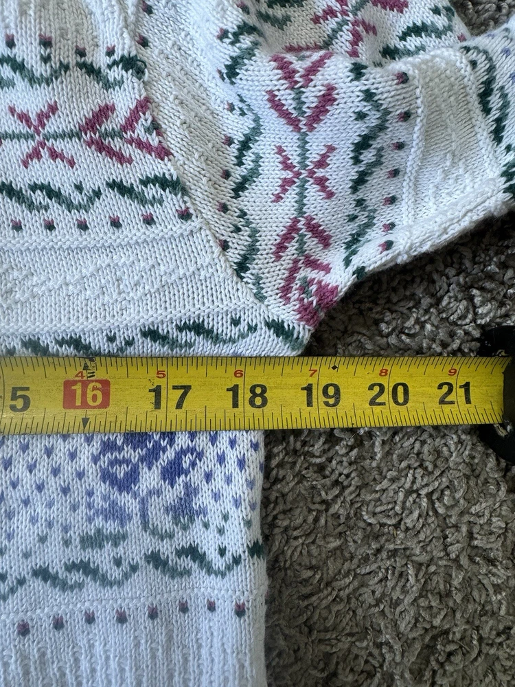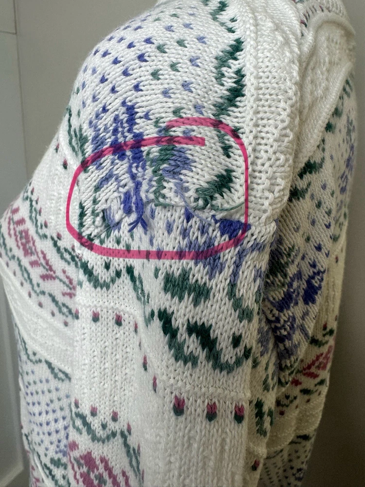 Pre-owned, no stains found. See photos for loose thread, but doesn’t appear to be coming unraveled. No size tag found but appears to be women’s medium or small. Measurements in the photos.