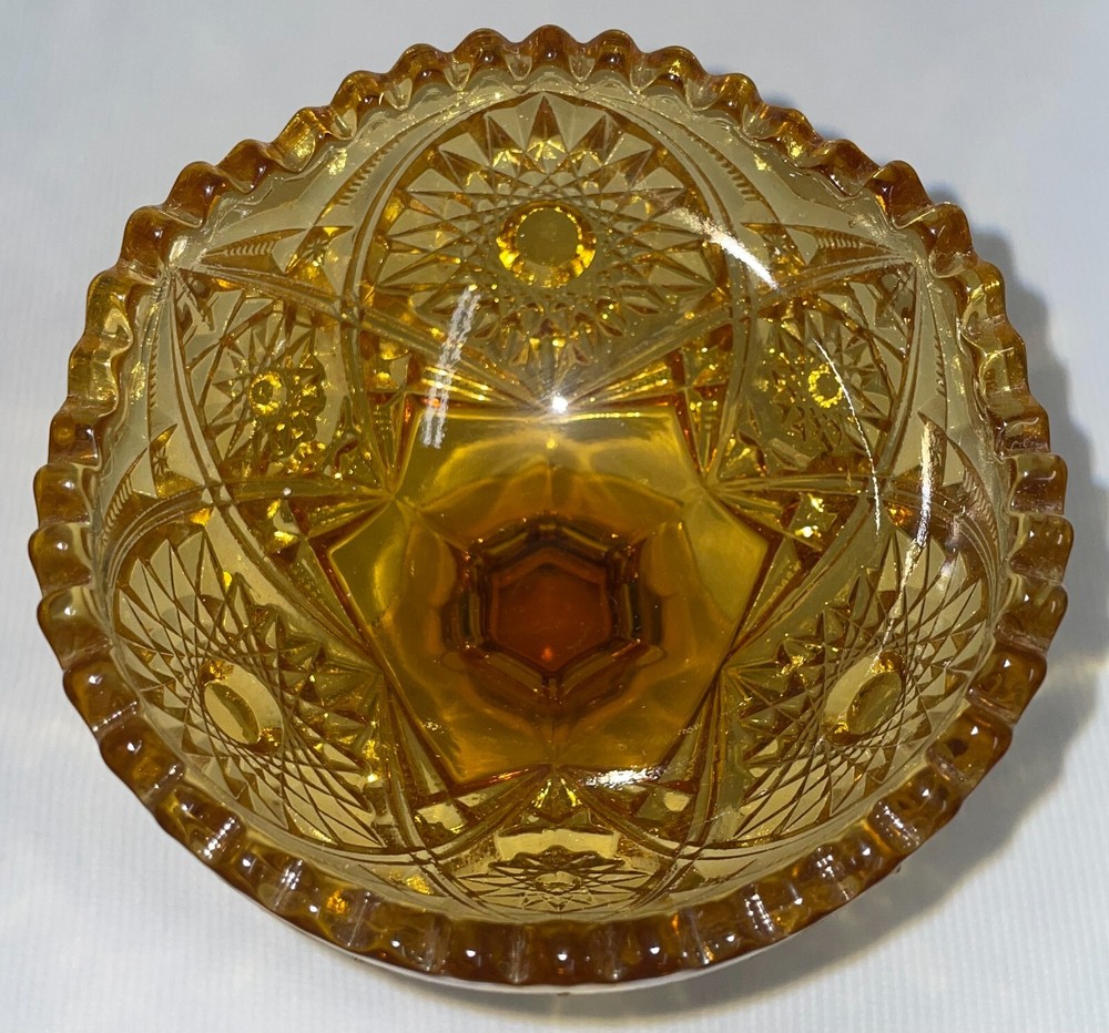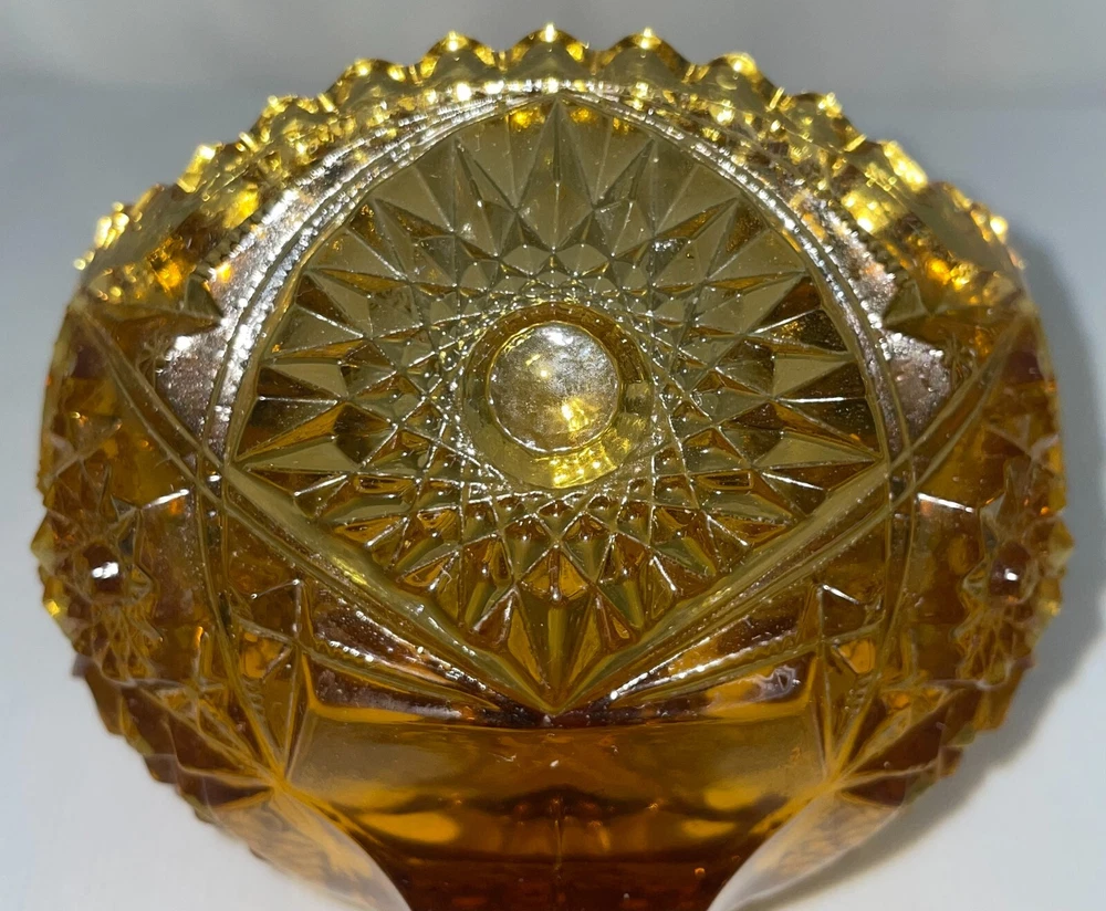 Vtg Wheaton Kimble Amber Glass Sawtooth Pedestal Candy Dish 5 Inches High Pre-owned, Very good condition, no chips or cracks. Has a sawtooth rim measures 5 inches across opening at top. Measures 5 inches high with a 4 inch base edge to edge. A beautiful button and sunburst pattern. ATTENTION REGARDING SHIPPING !! Shipping costs are expensive. Here is an offer that is hard to refuse. If you buy 2 or more items totaling $50 or more , I will handle the shipping cost (ground) anywhere in the continental United States. The items cannot be listed as having to be shipped alone due to SPECIAL PACKING NEEDS . eBay does not adjust the shipping cost removal from the invoice automatically. I can do it on the final invoice after you have the items in your shopping basket, before you pay. If eBay forces payment before that is done, you will receive a refund of shipping cost made before your package is shipped within the first business day following the transaction. The free shipping offer does not apply to Priority or Expedited shipping, although we can discuss a fair reduction in shipping cost should you desire the shipping upgrade. LOOKING FOR LESS EXPENSIVE SHIPPING? Click on "See details" next to Expedited Shipping Fee above to see other shipping options. eBay calculates the shipping fee based on package size, weight and type of shipping you select. SOME ITEMS CANNOT BE COMBINED WITH OTHER ITEMS DUE TO UNIQUE PACKAGING CHARACTERISTICS. THERE WILL BE A NOTE (here) IN THE LISTING WHEN COMBINED SHIPPING CANNOT BE USED. SAVE SHIPPING COSTS! – USE COMBINED SHIPPING Shipping costs are high. The best way to save money on shipping costs is through combined shipping,… purchasing more than 1 item and having them shipped together. The cost per item drops substantially. To do this you MUST NOT pay for items until after the combined shipping cost has been calculated on the invoice. If you pay before this has been done you will end up paying the individual shipping cost for each item, and I am unable to issue refunds for shipping overpayments when this occurs because eBay does not refund the fees they charge me on the refunded amount.