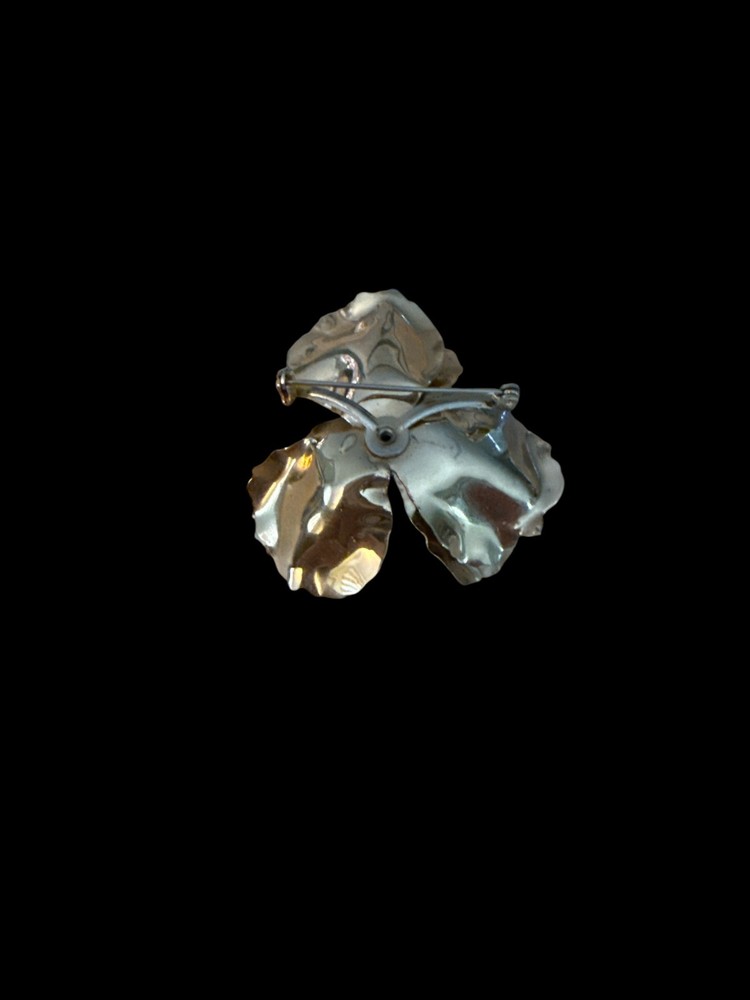 This vintage metal flower rose brooch with an amber rhinestone center pin is a charming piece of fashion jewelry. Signed and featuring a beautiful flower shape, this brooch adds a touch of elegance to any outfit. Its vintage design and rhinestone detailing make it a versatile accessory for both men and women. Perfect for collectors of vintage and antique jewelry, this brooch is a unique and timeless piece that is sure to be a standout addition to any jewelry collection. The paint on the metal has started to wear off over time, due to age. Measurements: 2" x 2.5" **Please note I am a veteran seller of 17 years under (TheChic_SheShed) I opened this account to move my jewelry to, as I closed my etsy shop. So please do not mind the little to no feedback. Check out my other account.