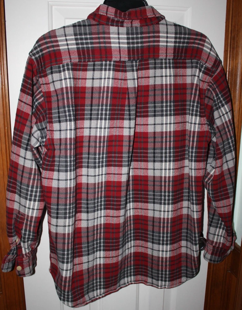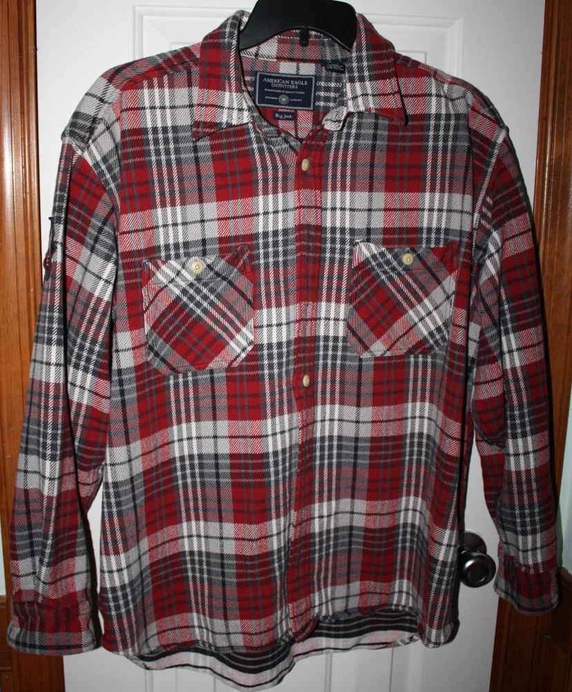 Craft your own unique style with the Vintage American Eagle Outfitters Big Jack Flannel Shirt, a must-have for those who appreciate a blend of classic and grunge fashion. This plaid long-sleeve button-up shirt in a men's large size is made from breathable heavy cotton fabric, ensuring both comfort and durability. With a collared neckline and button-down collar style, it's a versatile piece for casual outings, travel, or even a preppy workwear look. The shirt boasts an array of features like easy care and all-season suitability, making it a practical choice for any wardrobe. The vibrant multicolor pattern gives it a 90s rockabilly edge, while the shirt's pockets add a functional touch. Whether you're embracing the hipster aesthetic or maintaining a timeless outdoor theme, this American Eagle Outfitters shirt is designed to fit a regular size profile and is perfect for the fall, spring, and winter seasons. Approximate measurements are taken at the front of the garment. Chest is measured from pit seam to pit seam. Length is measured from front shoulder seam to hem. Long sleeves are measured from sleeve shoulder seam to cuff. Chest: 25” Length: 28” Sleeve: 24"