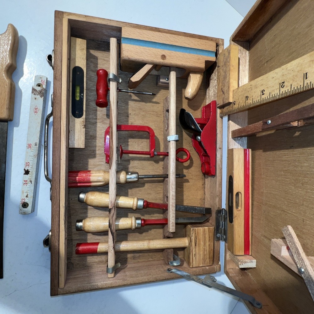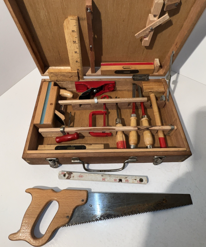 HomeVintage American Toy & Furniture Co. Tool Set Wooden Case + Tools (no hammer)