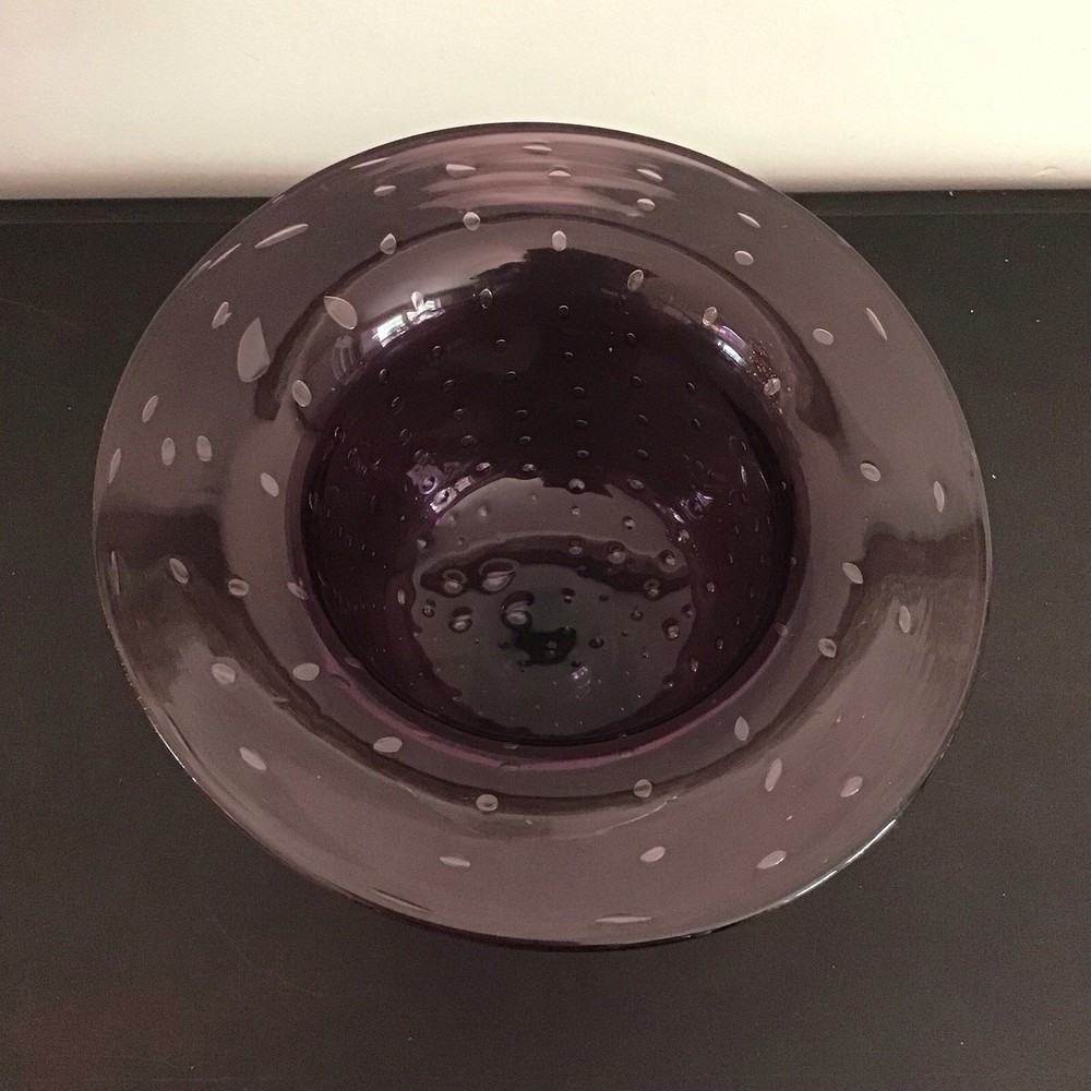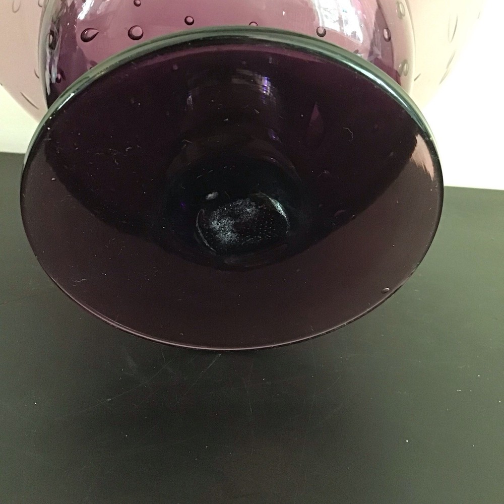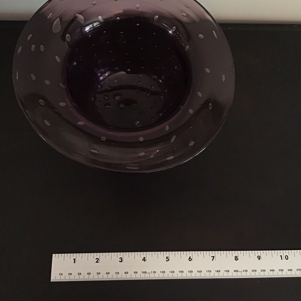 $ 15.84Vtg Murano Style Hand Blown Glass Vase Clear W/ Red Swirl Pattern Ruffled Rim
