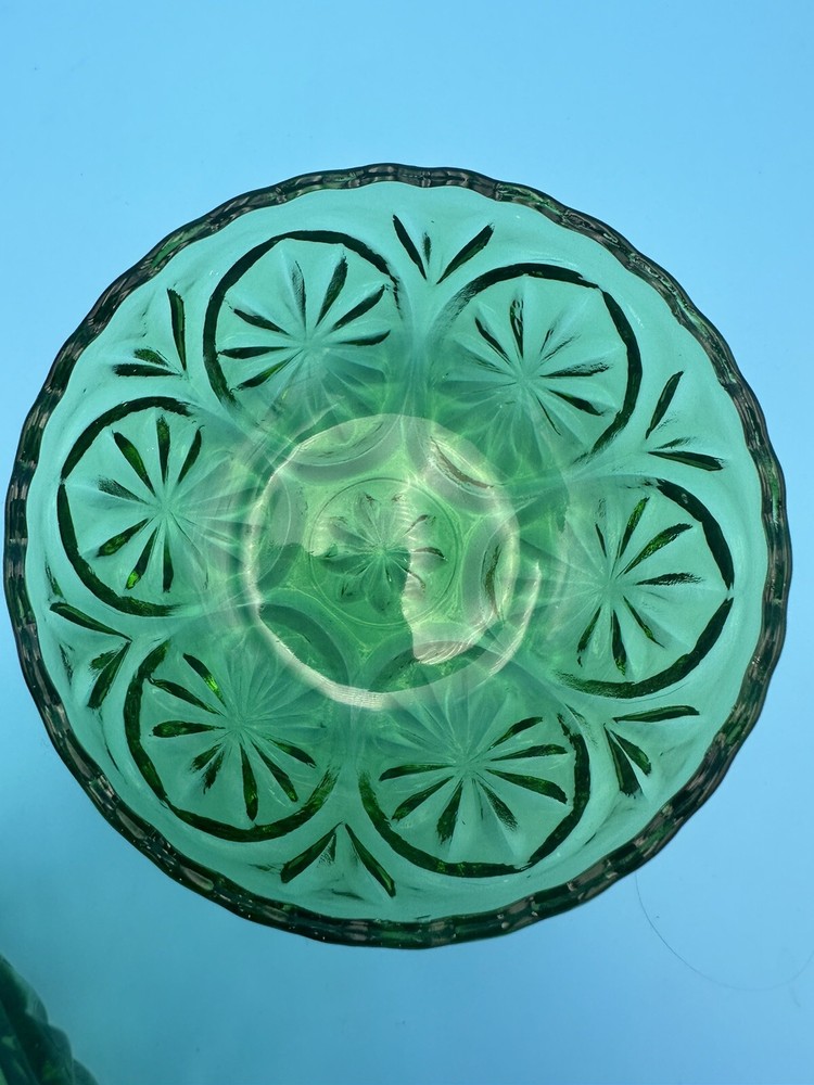 $ 2.641930s Elegant Blue Clear Floral Cut Glass Spiral Stem Wine Goblets