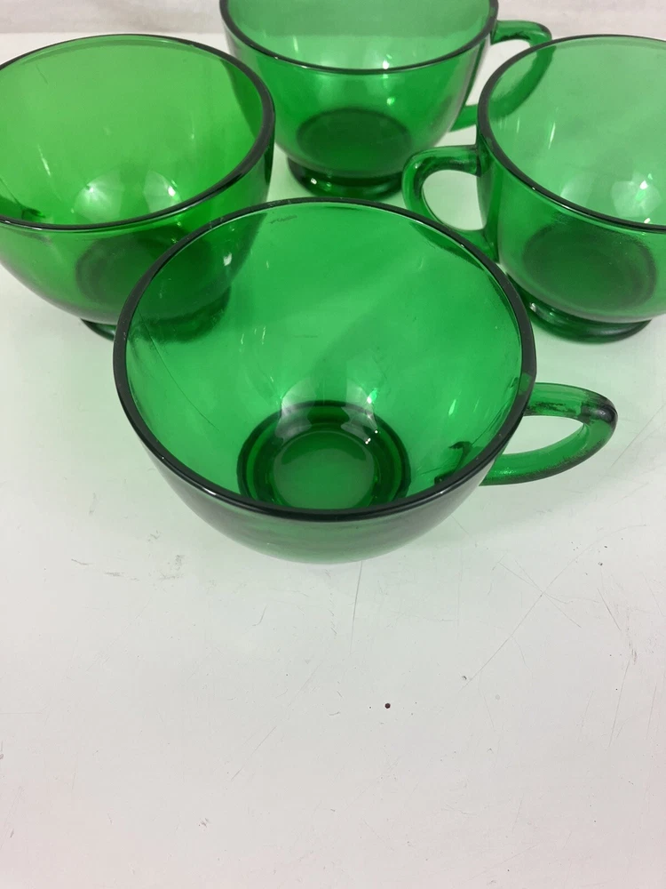 Vintage Anchor Hocking Emerald Green Tea Cup Mug Set of 4