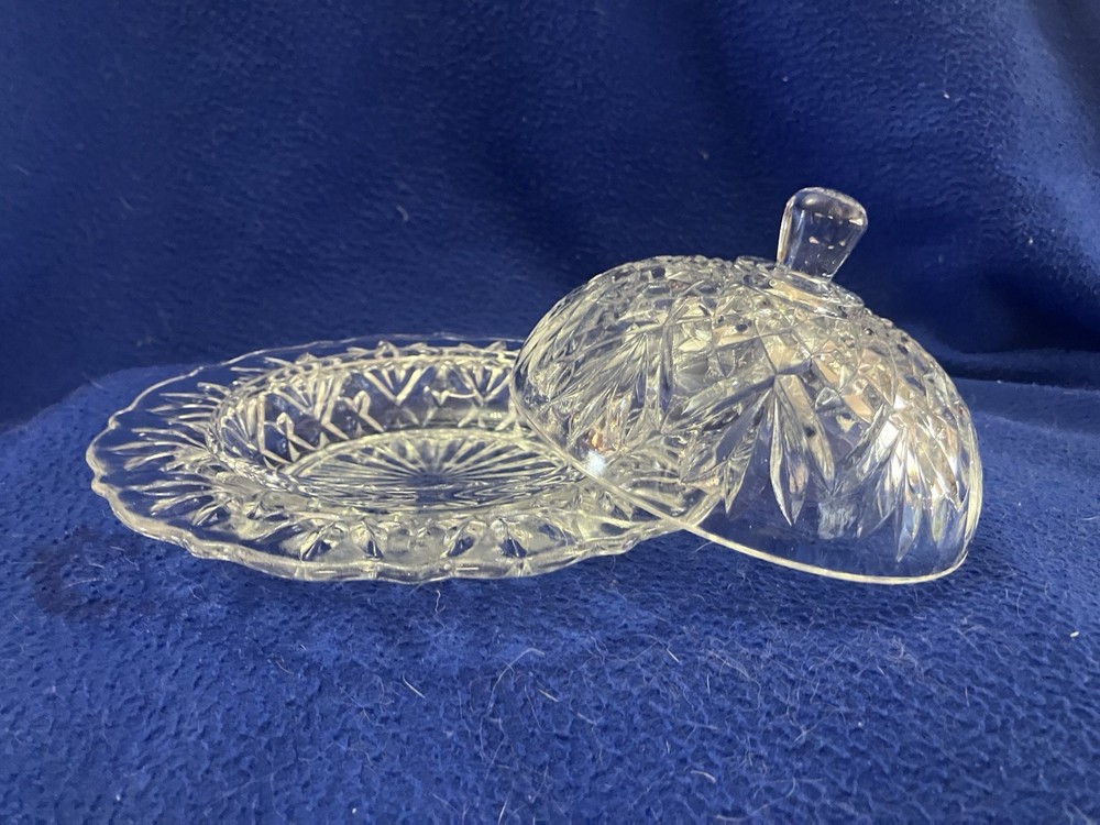 Vintage Heavy Crystal Glass Dome Cheese Dish with Fern Pattern