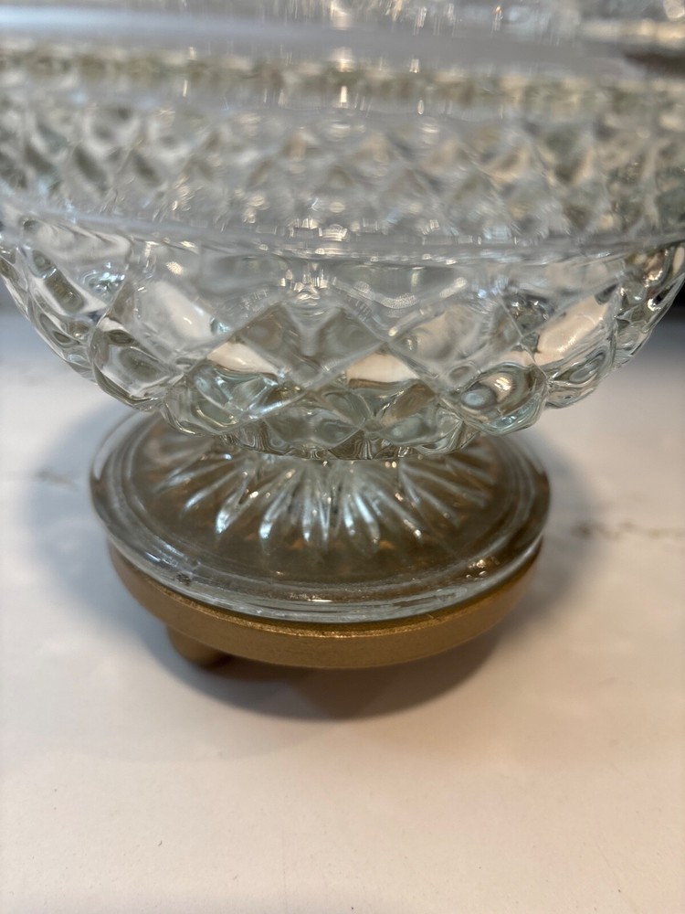 Elevate your display with the Vintage Anchor Hocking Wexford Cut Glass Crystal Candy Dish, a stunning piece that exudes classic elegance. The clear glass material showcases a intricate cut glass design, reflecting light beautifully to catch the eye of any guest or collector. Expertly crafted from high-quality glass, this candy dish is a testament to the timeless production style of Anchor Hocking's Wexford product line. Whether used to serve sweets or as a standalone display item, it adds a touch of sophistication to any setting. It's a must-have for those who appreciate the beauty of cut glass crystal in their home decor.